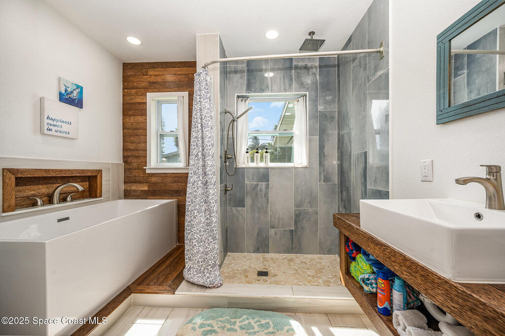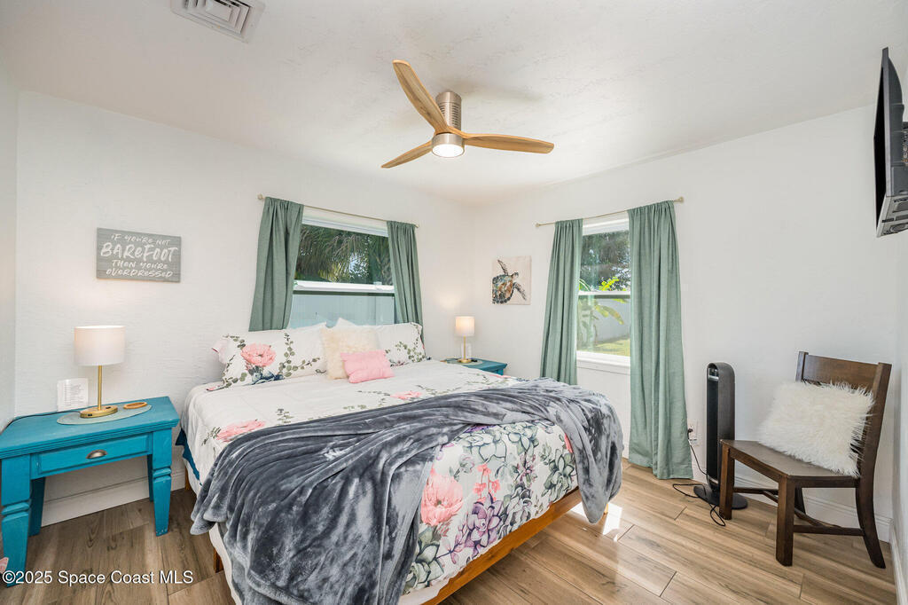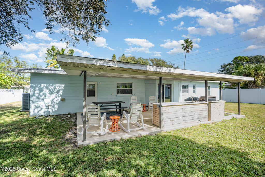 BRING AN OFFER! ''Old Florida'' style, updated to meet modern expectations. UNDERGROUND UTILITIES, NEWER ELECTRICAL & PANEL! 3 beds/2 baths /1 car garage & almost a quarter acre! FULLY FURNISHED TURNKEY & is consistently booked on short-term Evolve rental thanks to its UNBEATALBE location & inviting layout. AVERAGE REVENUE $65,922! Just 1 block from the ocean & a short stroll to the Cocoa Beach Pier, Ron Jon Surf Shop, & minutes from Port Canaveral, it places you in the heart of everything Cocoa Beach has to offer! Inside, the home features a SPILT FLOOR PLAN, oversized walk-in showers, solid flooring throughout, & a beautifully open kitchen that's perfect for entertaining. Step outside the sliders overlooking a spacious, fenced-in yard w 12x12 wired shed (EASY FINISH FOR HOME OFFICE), complete w a covered built-in OUTDOOR KITCHEN & eating space ideal for hosting or unwinding after a day in the sun. With its strong rental history & undeniable charm, this property is a true gem!