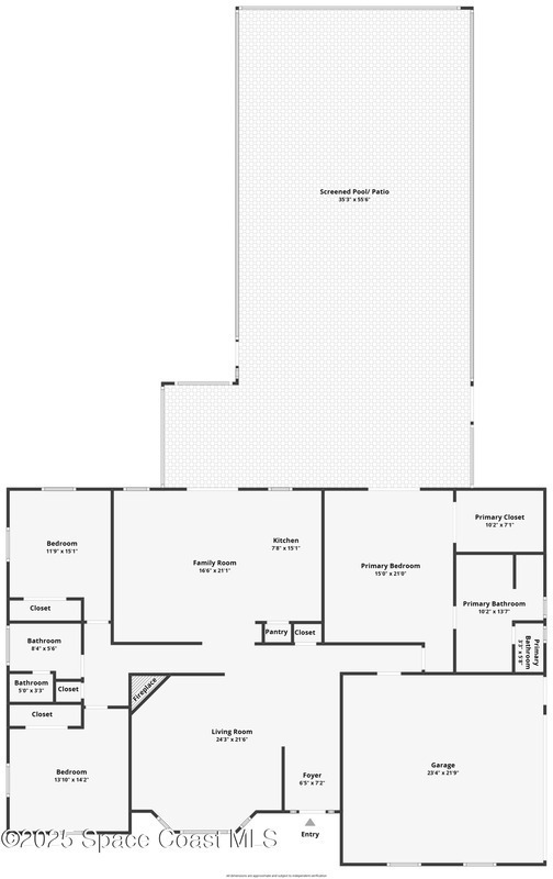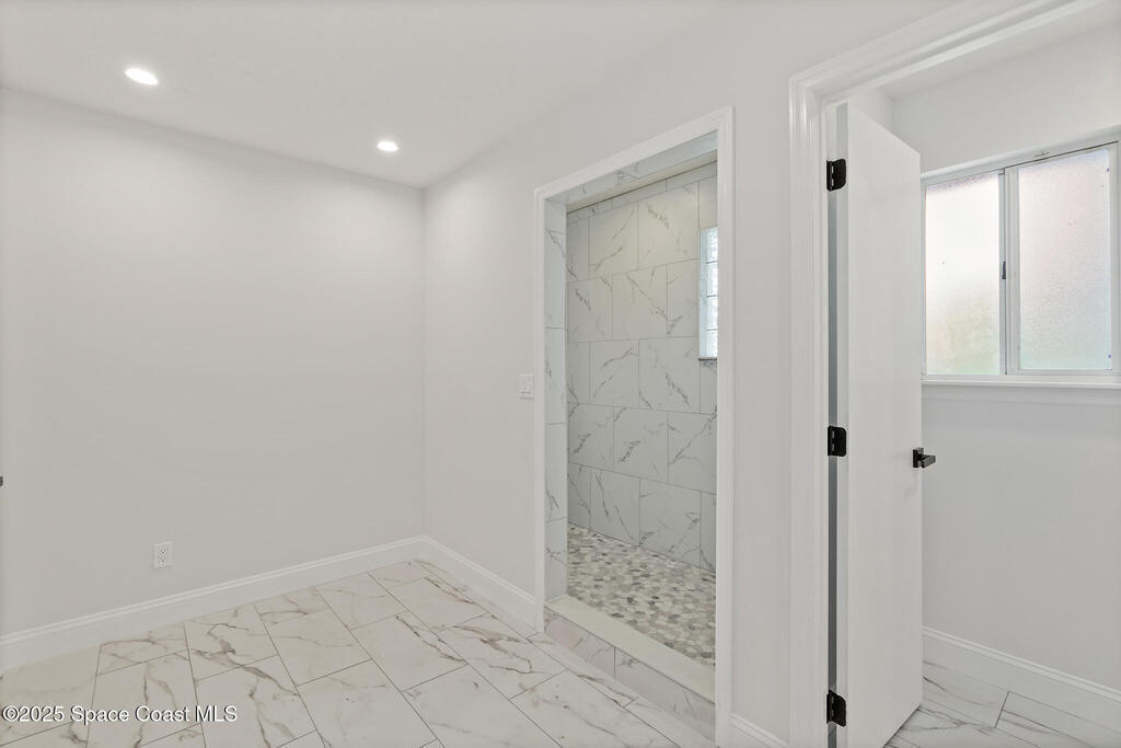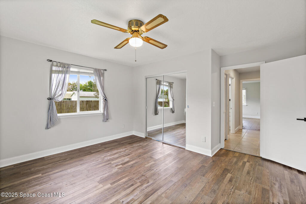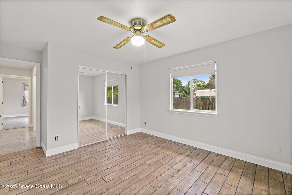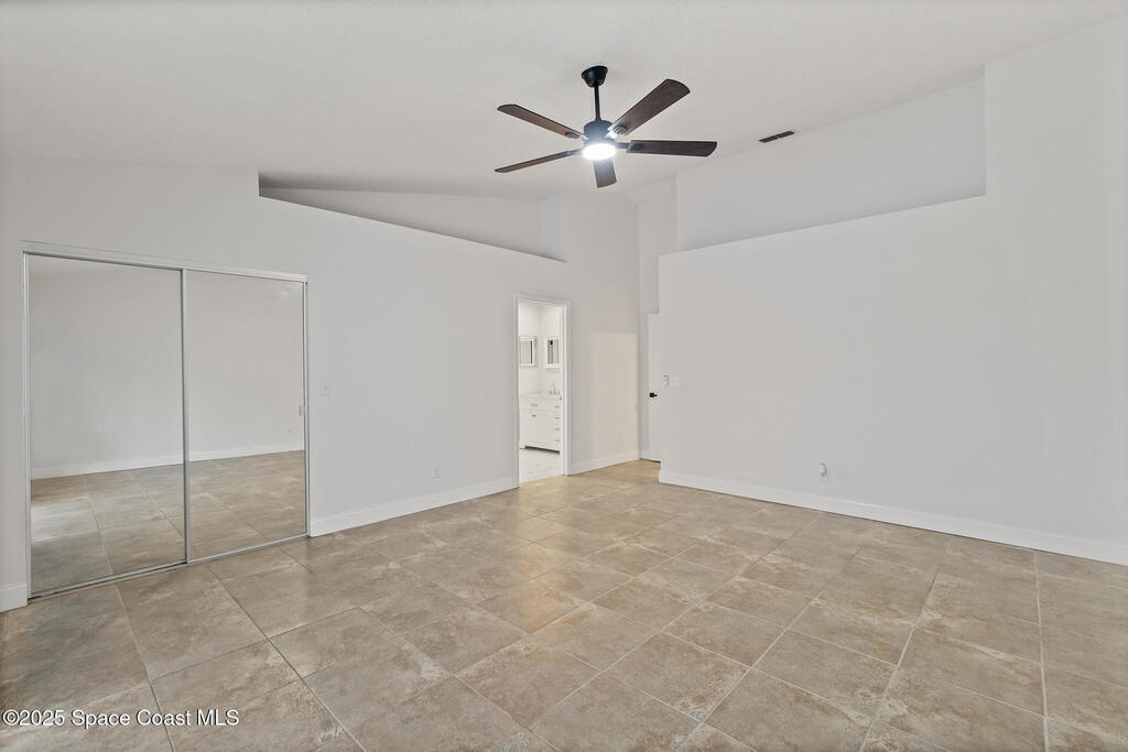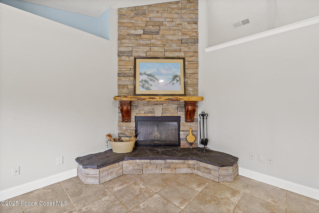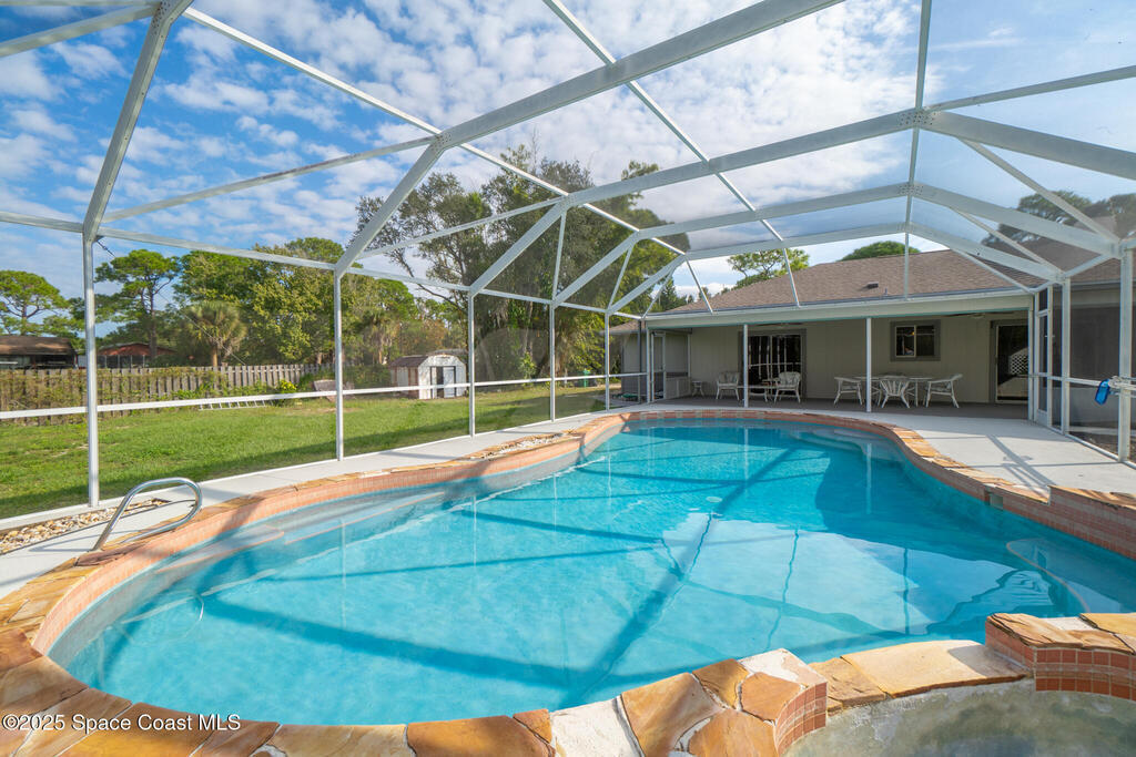 3/2 single family home on nearly 1 acre in Merritt Island. Screened pool, split floor plan, 2024 roof, no HOA, 2-car garage.This single story home offers privacy, space, and updated systems on a nearly one acre lot. With 2,038 square feet, the split floor plan includes vaulted ceilings, a spacious living room with fireplace, and sliding doors that open to the screened pool and patio. The kitchen features granite countertops, solid wood cabinetry, closet pantry, island workspace, built ins, and an adjacent dining area with outdoor access. Tile flooring runs through main living areas, with wood look tile and laminate in the secondary bedrooms for a carpet free interior.The primary suite offers direct pool access, a walk in closet, and a renovated en suite bath with dual sinks and tiled walk in shower. Recent updates include a 2024 roof, 2014 HVAC, 2025 water heater, fresh interior and exterior paint, exterior lighting, and a two car garage with epoxy flake flooring. Located on a q