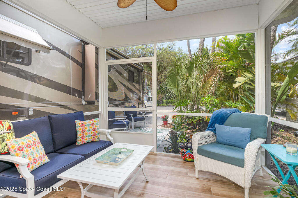 Welcome to this nicely shaded, extra wide exceptional RV lot with executive suite and shed for extra storage, located in the highly sought after Great Outdoors Premier RV/Golf Resort. Built in 2021, the modern executive suite offers stylish tile flooring, a full kitchen and bathroom, all designed with an efficient use of space. Features include a mini split cooling and heating system and impact doors and windows. The suite includes and conveys built in kitchen bench seating with table and queen leather sleeper sofa. You'll also enjoy an approximately 100sf screen room, making this a perfect place for both relaxation and entertainment. Enjoy resort-style living with incredible amenities such as swimming pools, tennis & pickleball courts, clubhouse with restaurant, golf course, and much more. This is a rare opportunity to own a turnkey property in one of the finest RV and Golf communities!