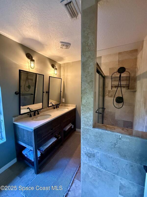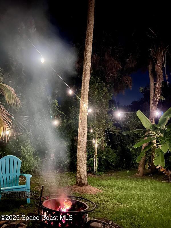Discover off-grid paradise just steps from the ocean. This three bedroom, two bath home with a two car garage blends coastal living with self-reliance. A full solar array and whole-home battery keep you powered for a day or more, complemented by a true artesian well with a backup hand pump. Inside, enjoy the comfort of a new Trane HVAC system. Outside, unwind on a serene 0.45-acre lot that backs to wooded areas for privacy and quiet. The backyard is a tropical food forest with fruiting coconuts, bananas, avocados, and mature oaks, and you might even spot blue land crabs. You are just north of Sebastian Inlet and Long Point Park, so surfing, fishing, boating, canoeing, and kayaking are all at your fingertips. From the deck you can listen to the waves and even catch rocket launches on the horizon. With no HOA, low county taxes, and convenient Sprouts delivery, this is the relaxed coastal lifestyle you have been looking for.