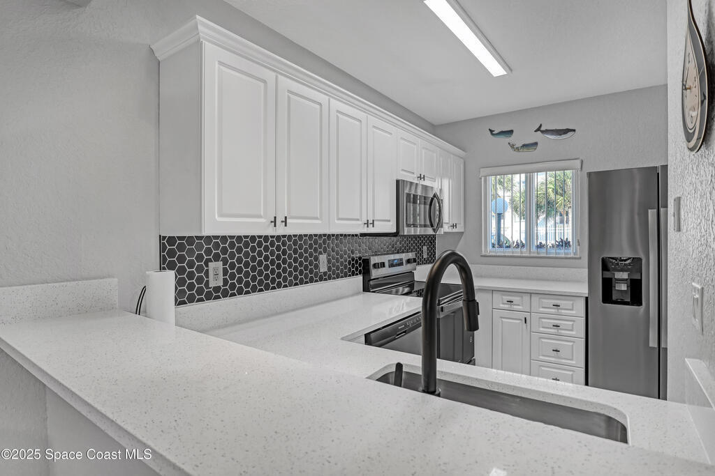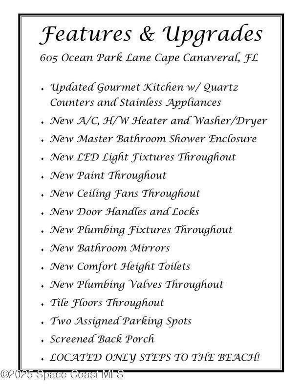 Experience resort-style living in this beautifully renovated & fully furnished ground-floor 2-bedroom, 2-bath villa, ideally located just steps from the pristine shoreline of the Atlantic Ocean. This coastal retreat offers effortless access, modern upgrades, and a bright, beachy ambiance throughout. Step inside and discover the new gourmet kitchen, featuring quartz countertops and stainless steel appliances--perfect for casual dining or entertaining. Every detail has been thoughtfully refreshed, including fresh paint, new ceiling fans and lighting, new door handles and locks and upgraded plumbing fixtures and valves throughout. Enjoy the comfort of new central A/C, a new W/H, and a new washer & dryer for ultimate convenience. The ceramic tile flooring throughout, providing a clean, coastal look that's easy to maintain. No detail has been overlooked, modern comfort with an unbeatable beachside location. This property invites you to relax, unwind, and make every day feel like a vacation!