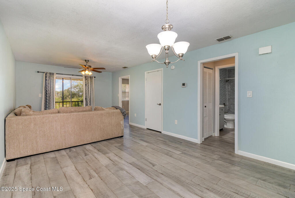 Move-In Ready Condo in the Heart of Titusville!Welcome home to this charming and updated 2-bedroom, 2-bathroom second-floor unit featuring beautiful vinyl plank flooring throughout. The kitchen boasts stainless steel appliances (2022), and the unit includes a stacked washer/dryer, ceiling fans in every room, and a storm door for added comfort. Relax on your screened balcony -- the perfect spot for morning coffee or evening sunsets.Enjoy the convenience of one assigned parking space plus ample guest parking. The low HOA fee of just $275/month covers grounds maintenance, water, sewer & trash making this home an easy choice.Ideally located close to shopping, dining, I-95, and US-1, and just 15 minutes to Kennedy Space Center, 30 minutes to the beach, and 45 minutes to Orlando.