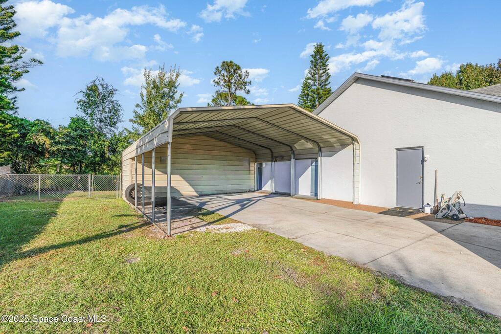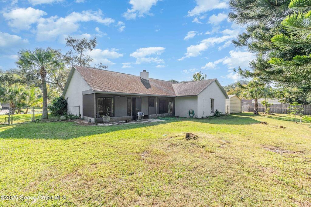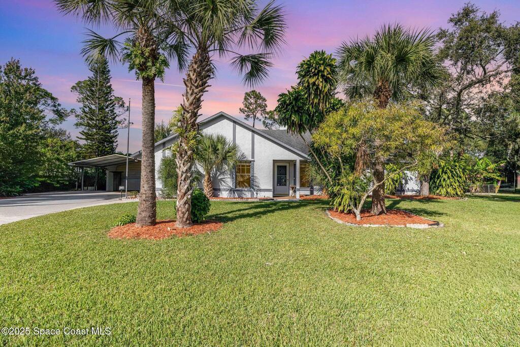 Looking for an extra-large lot in Brevard County? This property could be the perfect fit!This spacious home features a desirable split floor plan with 3 bedrooms, 2 full bathrooms, and an additional den/family room offering flexible living space. Enjoy outdoor living on the large covered porch, plus the convenience of two carport spaces and a storage shed/workshop.The interior and exterior have been freshly painted, giving the home a clean, move-in-ready feel. Energy-saving solar panels--fully paid for by the seller are connected to the water heater. Storm shutters are also included for added peace of mind.This is a fantastic property with space, functionality, and efficiency--one you won't want to miss!
