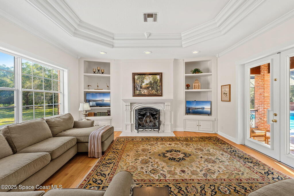 Welcome to The Willows, a prestigious gated equestrian community. With a BRAND-NEW ROOF, this stunning Georgian-style estate is gracefully nestled among majestic oaks on 5 private acres, evoking the serenity of a park.A marble foyer leads to elegant interiors with solid plank wood floors & sparkling chandeliers. The gourmet kitchen features granite countertops, custom cabinetry, Sub-Zero refrigeration, double ovens and a generous pantry. The cozy family room with a wood-burning fireplace opens to a screened porch overlooking the heated pool, waterfall, and jacuzzi amid lush natural beauty. The home offers 2 primary suites, one on the 1st floor with 2 walk-in closets, one on the 2nd floor, plus 3 ensuite bedrooms, each with a walk-in closet. Also included are formal living and dining rooms, an office, playroom, 2 half bathrooms, 3-car garage with workshop, generator, and shed. Community amenities: tennis, basketball, pickleball (coming soon), and a palm-lined trail to Lake Washington