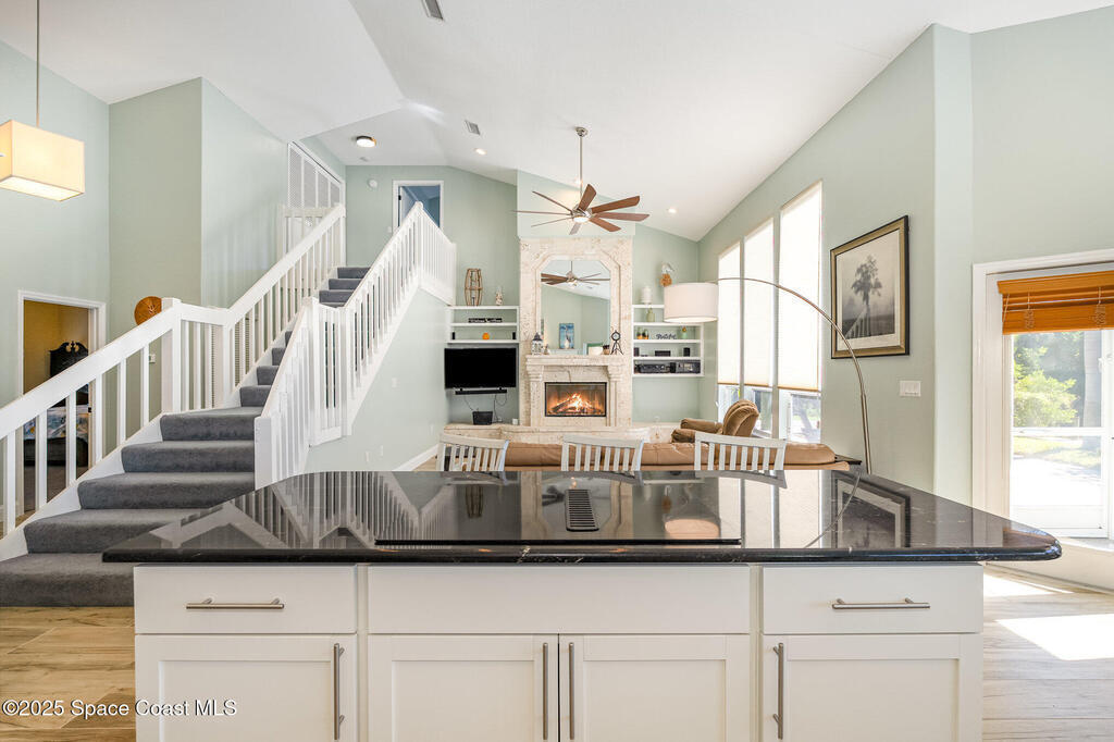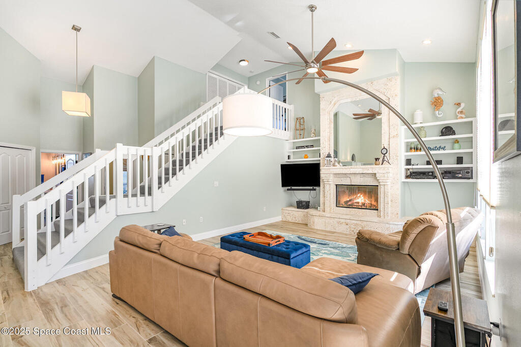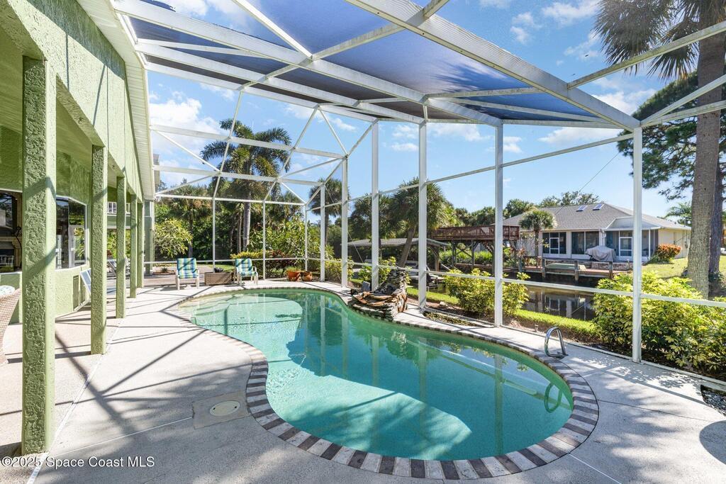 Direct river access. 3 car garage Home located on .35 acre, close to area of new custom homes. Masterfully renovated 4 bedroom, 3 full baths, plus half pool bath.. Bonus room ideal for office, hobby room or guest quarters with private entrance. No HOA. Porcelain tile flooring replaced on 1st level. Both downstairs bathrooms renovated. Custom eat in kitchen with granite counters. Family room with dramatic coquina fireplace. Formal dining room, living room, screened pool with waterfall. Upstairs Master suite with screened patio overlooking canal. Updated electrical panel & A/C compressor downstairs. Wood decking, dock & boat lift.