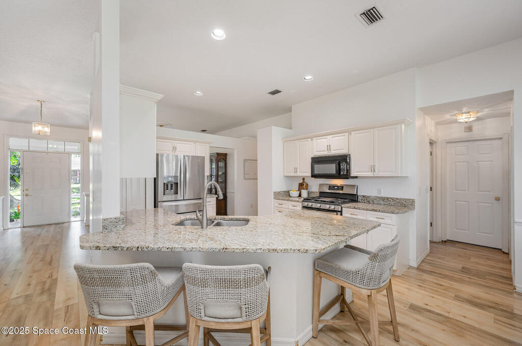 Welcome to your dream home! This incredible 4-bedroom, 2-bath home is a must see, nestled on a generous .34 acre lot in the heart of Lockmar with NO HOA! Enjoy many great updates including a new roof, new exterior and interior paint, beautiful new flooring and more! As soon as you walk in the light, bright, open floor plan is sure to impress you. The updated kitchen is a chef's dream featuring granite counters, plentiful cabinet space & stainless steel appliances. The kitchen flows seamlessly into the dining & family rooms with beautiful french doors that open to the oversized patio & spacious fully fenced yard. The split floor plan offers a large owner's suite with a walk-in closet and spacious ensuite bathroom. On the other side of the home you'll find 3 additional bedrooms & a full bath offering space for the whole family. Best of all this home is located minutes from great shopping, restaurants, A rated schools, area beaches & I-95!