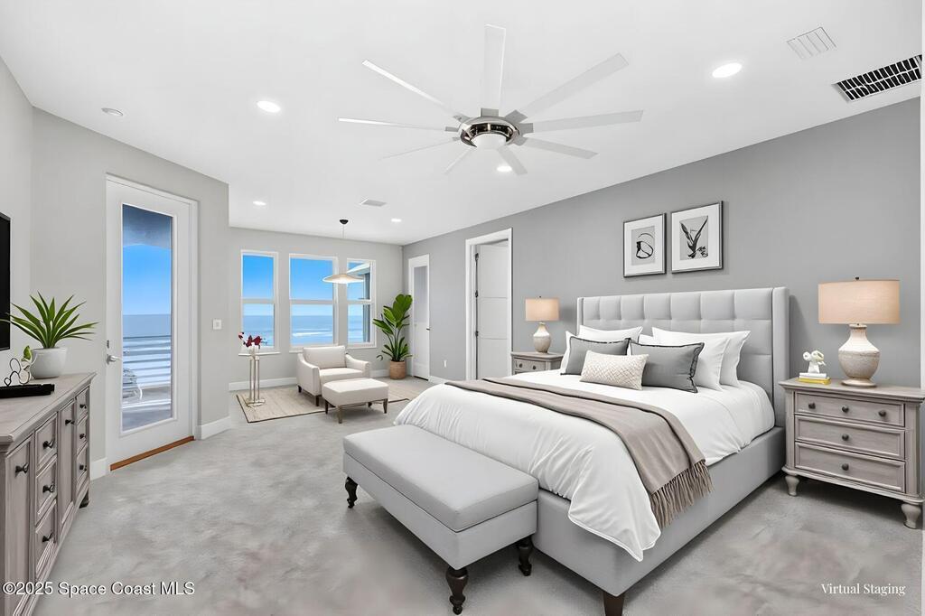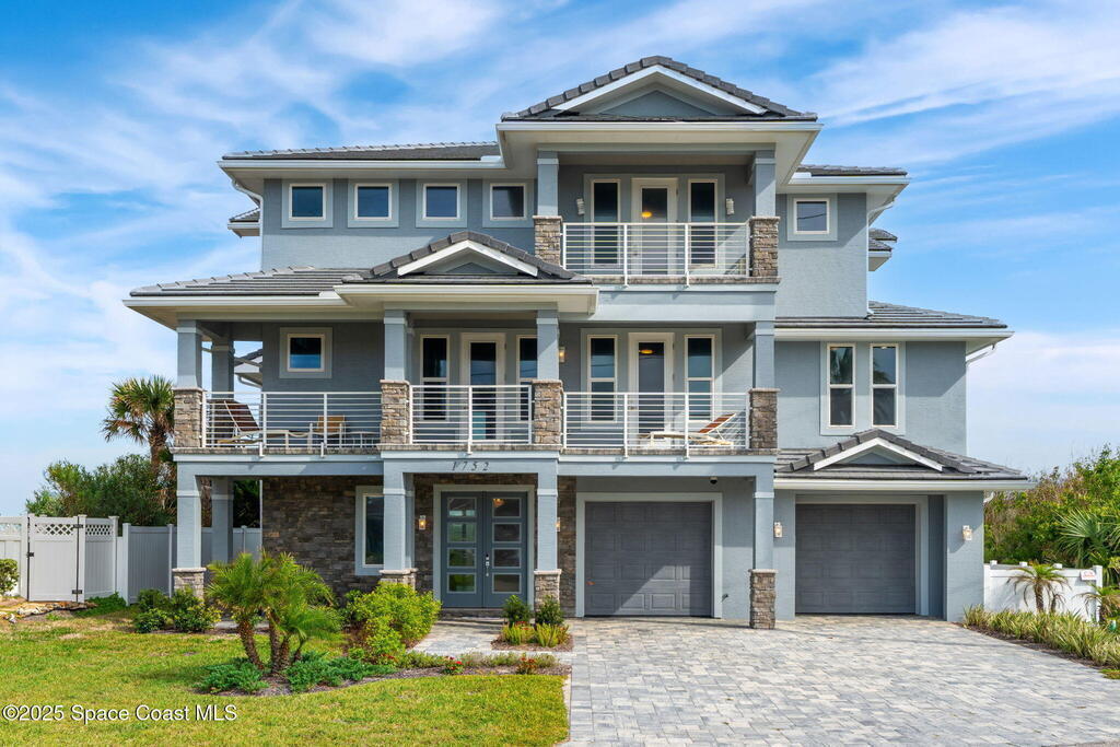 Where modern design meets the magic of coastal living, this newly built Flagler Beach estate redefines life by the shore. Imagine waking each morning to sounds of waves and panoramic views of the Atlantic, framed by five private balconies capturing every sunrise and sunset. Inside, you'll discover 6,200+ square feet of open-concept living spaces, floor-to-ceiling windows, and architectural fireplaces that blend warmth with sophistication. The chef's kitchen is pure artistry: a waterfall island, custom cabinetry, and designer finishes ideal for entertaining and everyday indulgence. An in-home elevator connects all three levels, leading to serene bedrooms and a primary suite where mornings unfold with ocean views and nights drift away under starlit skies. Outdoors, lush landscaping, deep-well irrigation, and a private beach walkover create your own seaside sanctuary. With a 4-car garage and luxury details at every turn, this home captures the essence of Florida coastal living.
