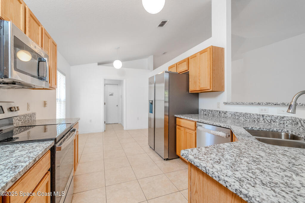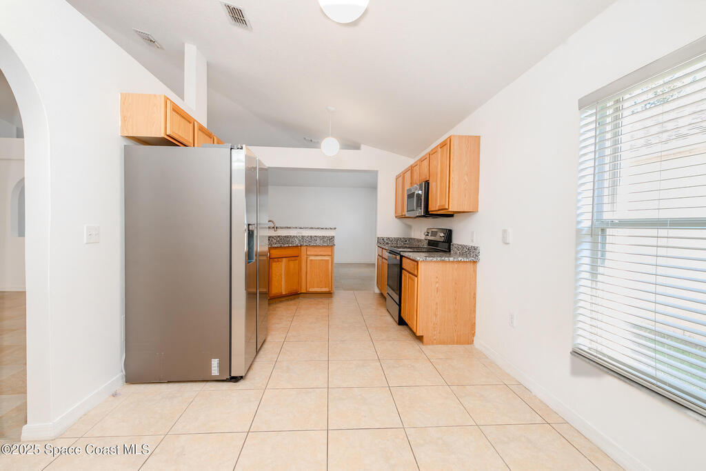 This single-family home offers 3 bedrooms, 2 bathrooms, and a 2-car garage. The open floor plan connects the living room, dining area, and kitchen, which has new stainless steal appliances, granite countertops and ample storage. The master bedroom includes a walk-in closet. The spacious backyard is fenced and ideal for outdoor activities or relaxation. Home has Hurricane Shutters and an emergency back-up generator, new roof in December of 2023..Easy access to Cocoa Beach, Port Canaveral, and Orlando via I-95, Melbourne is a favorite for families, retirees, and professionals working in the nearby tech and aerospace industries.