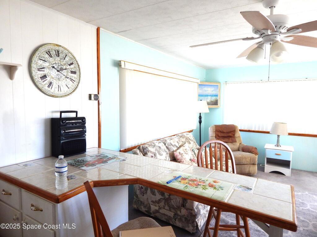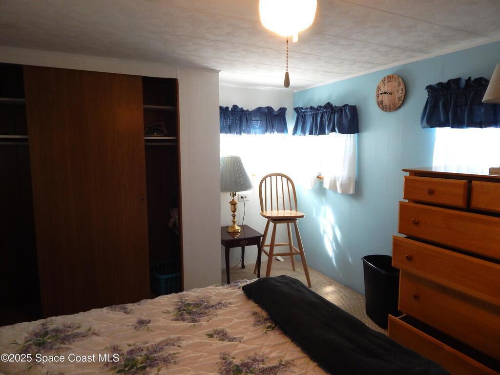 Upgraded 1 Bed 1 Bath in Palm Bay Estates, a 55 and over waterfront community. The upgrades from 2016 to present include an Electric amp increased to 125 amps with a new breaker panel. Newer windows, interior paint, custom wood window sills, air conditioner, light fixtures with fans, new patio door, and roof resealed. A shed in the carport adds extra storage. Gas stove, refrigerator, and microwave in 2023. This unit is perfect for getting away from the northern winters.