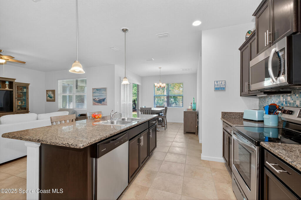 Spacious Home Ready Now -Skip Builder Delays & Incentives!** 1% buy down rate approved with preferred lender**This spacious home offers comfortable Florida living with an open layout designed for everyday living and entertaining. The kitchen overlooks the main living and dining areas, creating a bright and welcoming space that flows seamlessly to the covered lanai and backyard. The primary suite provides a relaxing retreat with a private bath and generous closet space, while additional bedrooms offer flexibility for guests, a home office, or hobbies. Enjoy a peaceful neighborhood with sidewalks, scenic surroundings, and access to Bayside Lakes amenities including community pool, clubhouse, playground, and tennis courts. Conveniently located near shopping, dining, schools, and easy access to I-95. Move-in ready and a great opportunity to enjoy the Florida lifestyle in a sought-after gate