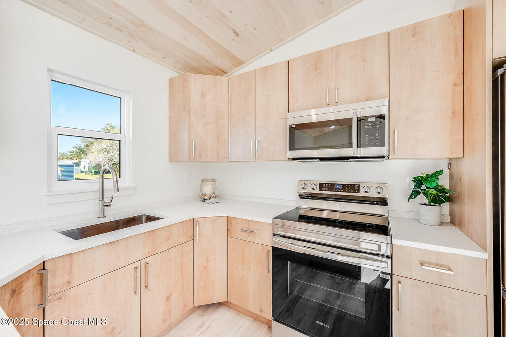 Movable Roots crafts homes that are as tough as they are beautiful. The Atlas is designed to Florida Building Code and rated to withstand 180 mph hurricane winds, with metal roofing, high-performance spray-foam insulation, and impact-resistant windows and doors-all working together to keep you safe, secure, and comfortable year-round.Inside, elegance meets everyday living: Vaulted ceilings with tongue & groove stained wood for warmth and character; Quartz countertops and American-made soft-close cabinetry, Full Stainless Steel kitchen appliance package, including washer and dryer--truly move-in ready.At 585 square feet, the Atlas delivers a spacious 1-bedroom, 1-bath retreat with an open living and kitchen flow that feels expansive, airy, and effortlessly coastal. Despite its modest size, it delivers big on style, safety, and sophistication.