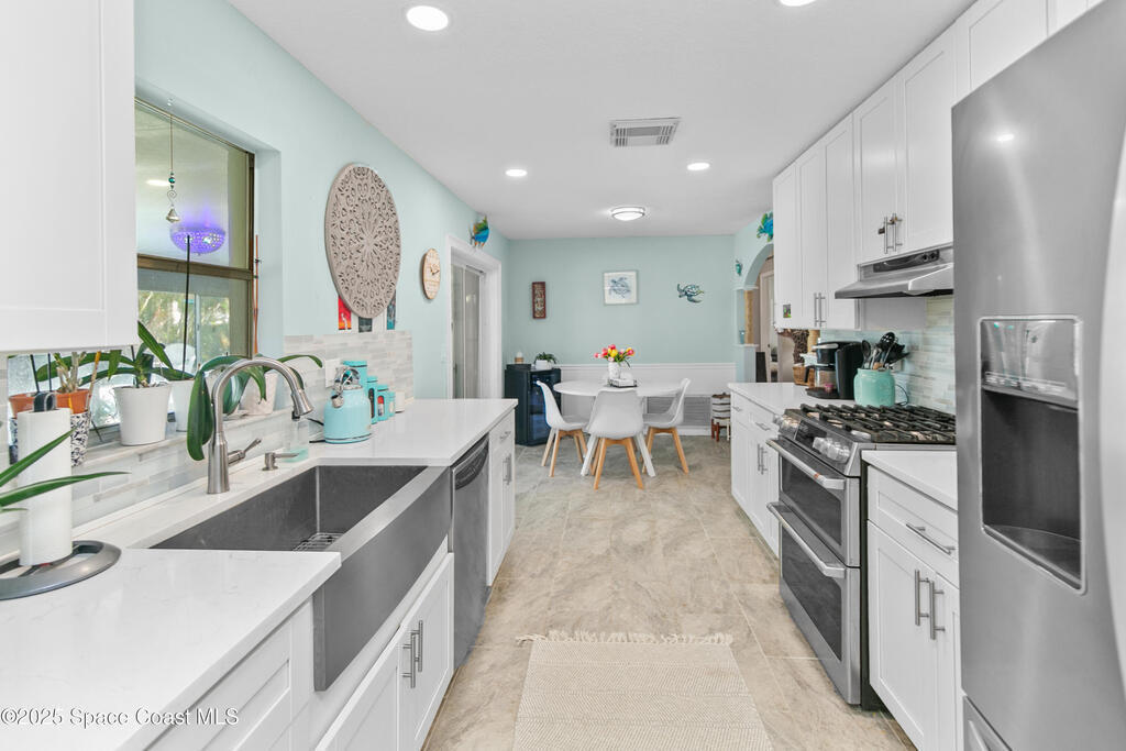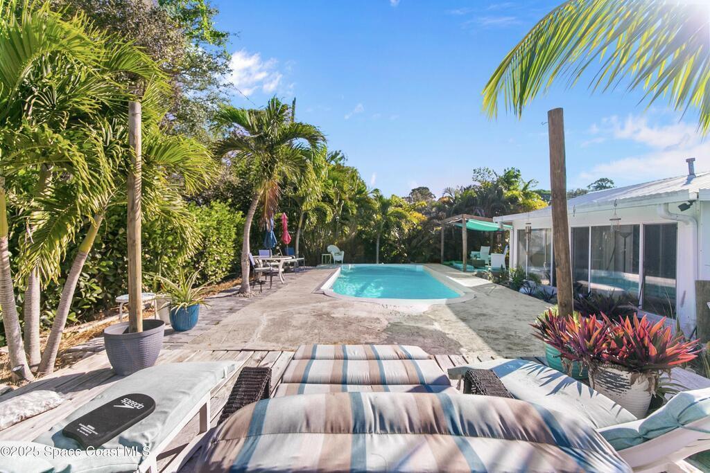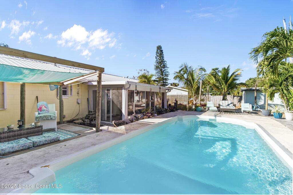 Welcome to 1820 Via Roma in Merritt Island--updated, coastal living on the iconic Space Coast. This renovated home features a modern kitchen with quartz countertops, stainless steel appliances, and a Cafe gas oven. Major updates include a 2018 metal roof, 2016 HVAC, 2023 water heater, and gas heating. Enjoy the flexible back porch with glass sliders that create a cozy enclosed space on cooler days or open to a breezy screened porch in warmer months. The backyard offers an in-ground saltwater pool with a sun shelf and plenty of room to relax. RV/boat parking adds convenience for Florida adventures. Plus, you can even catch rocket launches from the property. Not in a flood zone. This home won't last long. Schedule your showing today! Buyer and buyer's agent to verify all information deemed important.