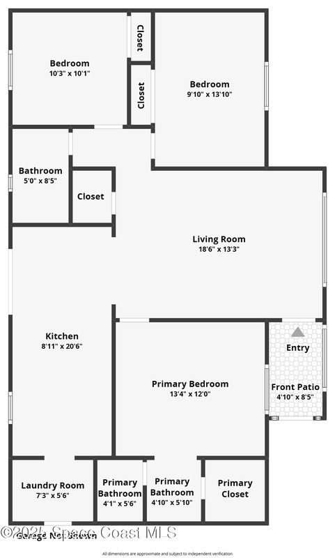 - RoomsBathroom 1, Bathroom 2, Bedroom 1, Bedroom 2, Dining Room, Laundry, Living Room, Primary Bathroom and Primary Bedroom