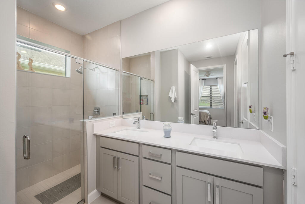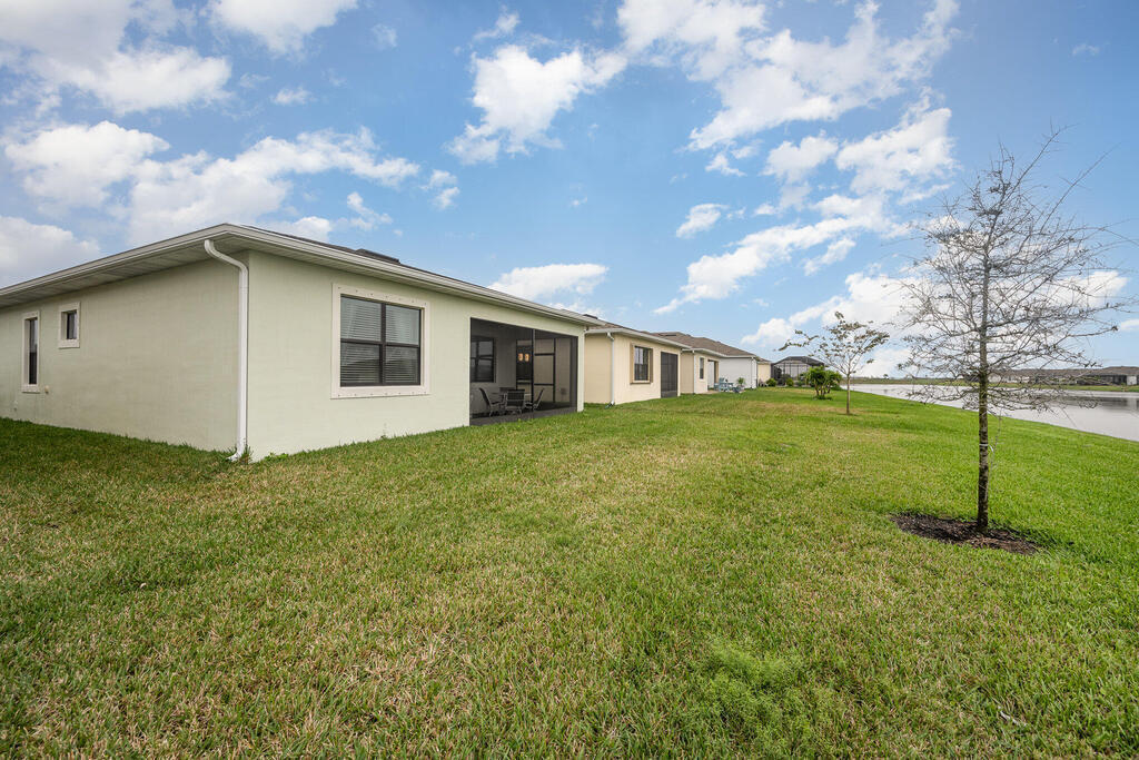 OWNERS HAVE PRICED THIS HOME TO SELL. 55+ COMMUNITY AT BRIDGEWATER VIERA. BEAUTIFUL 2022 BUILT HOME, 3 BEDROOMS 2 BATHROOMS. FULLY TILED THROUGHOUT, NO CARPETING. ALL WINDOWS ARE DOUBLE PANE, AND HURRICANE IMPACT FRONT GLASS DOOR. KITCHEN FEATURES QUARTZ COUNTERS, BEAUTIFUL GREY CABINETS W/ UNDER COUNTER LIGHTING AND MOLDING, S/S APPLIANCES & 2 PANTRIES. LARGE BREAKFAST BAR & WHITE TILE BACKSPLASH. PRIMARY BEDROOM HAS 2 WALK-IN CLOSETS & OVERLOOKS LAKE. TRANSOME WINDOW IN THE SHOWER MAKES FOR GREAT LIGHTING, AND DOUBLE SINKS. LARGE INSIDE UTILITY ROOM AND WASHER/ DRYER CONVEYS. NICE SCREENED BACK PORCH W/ PAVERS OVERLOOKING THE LAKE. INSIDE WAS PROFESSIONALLY PAINTED WITH A LIGHT GREY COLOR THROUGHOUT THE ENTIRE HOME.NO WASTED SPACE IN THIS HOME.