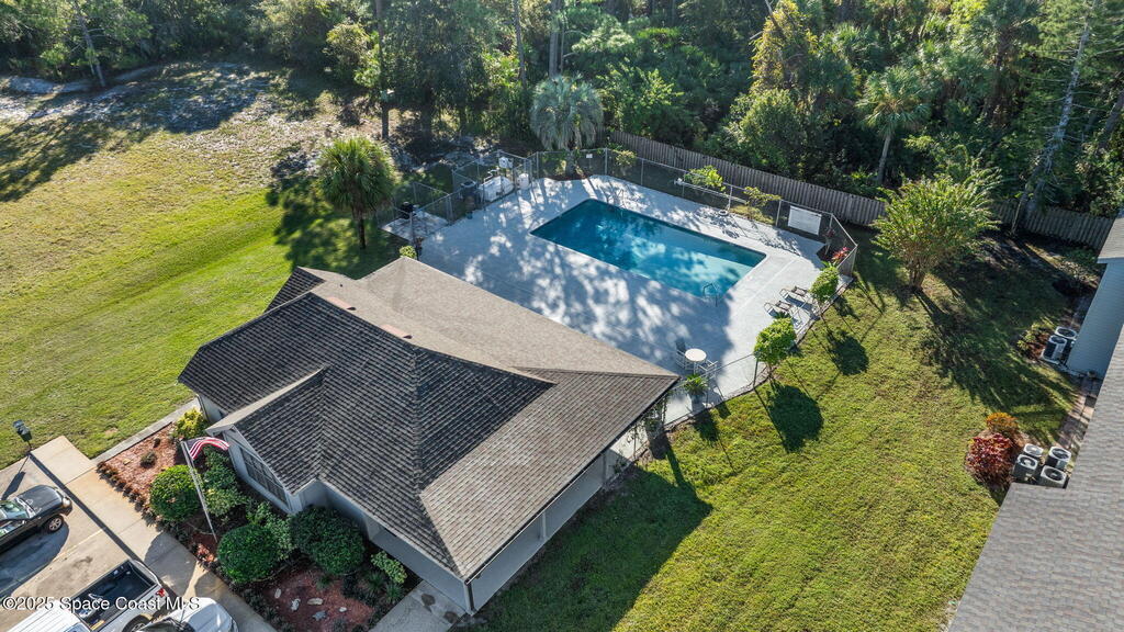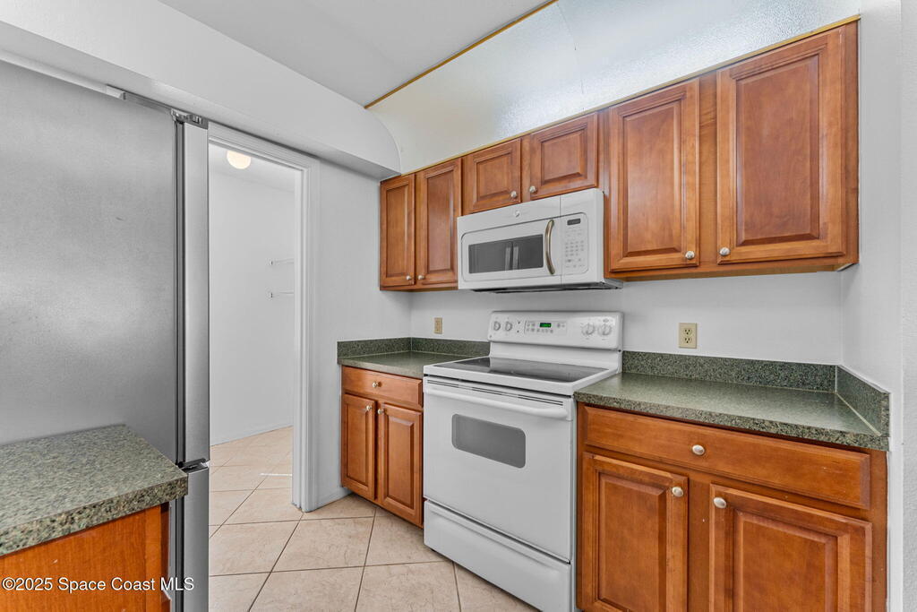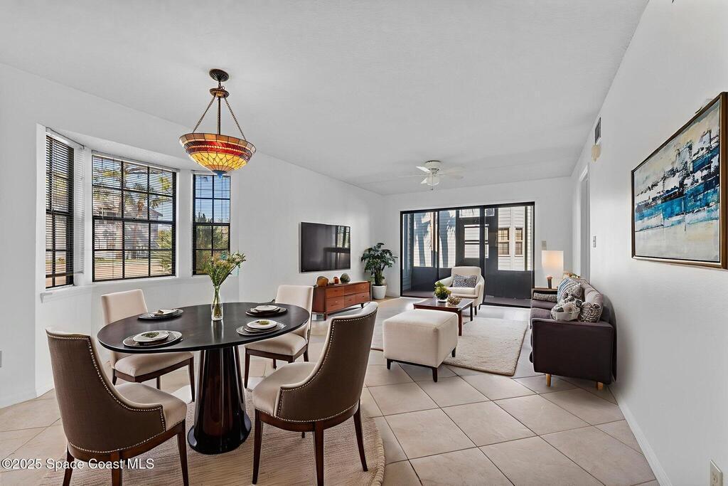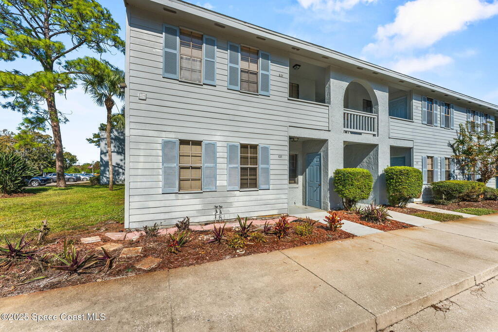 There's No Place Like Home! This first floor condo is the perfect seasonal home as well as year round Space Coast lifestyle! End unit offers more windows for bright interior. Some interior updates complete but still leaving room for your own style. Big items done ... water heater - 2024 ... HVAC - 2020 has easy clean out valve ... interior paint - 2025. Kitchen has refreshed spice cabinetry & stainless refrigerator & dishwasher installed 2024. Pass thru kitchen to private laundry. Back patio has windows & tile floor creating a sunroom vibe for year round enjoyment. Village Square has community pool, allows 2 small pets & rental potential after 1st year. Conveniently located across from shopping plaza with grocery store, Bank of America & Walgreens 1 block away ... all of the shoppes, restaurants & theater in Titus Landings just 2-3 minute drive. Short drive to historic downtown Titusville - Pritchard House, restaurants & Titusville Playhouse. Easy access to KSC, cruise port, beaches