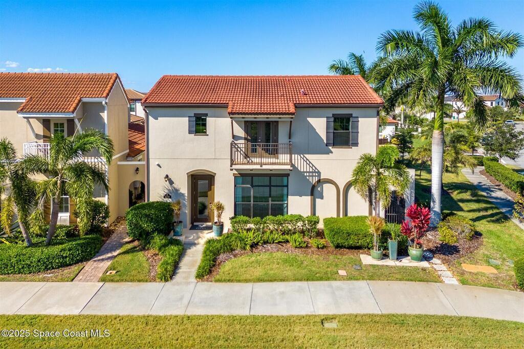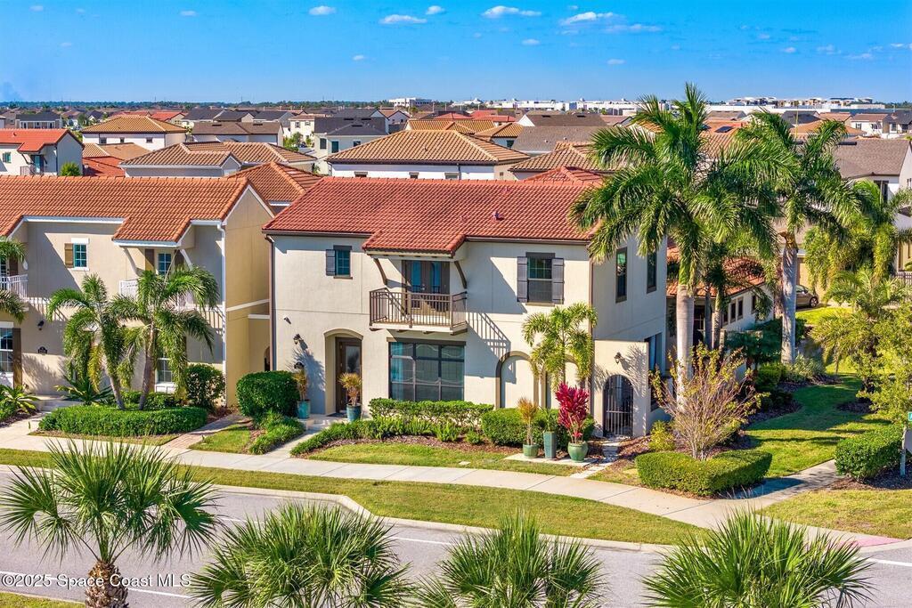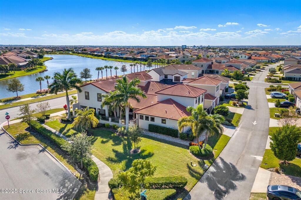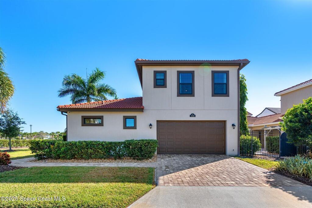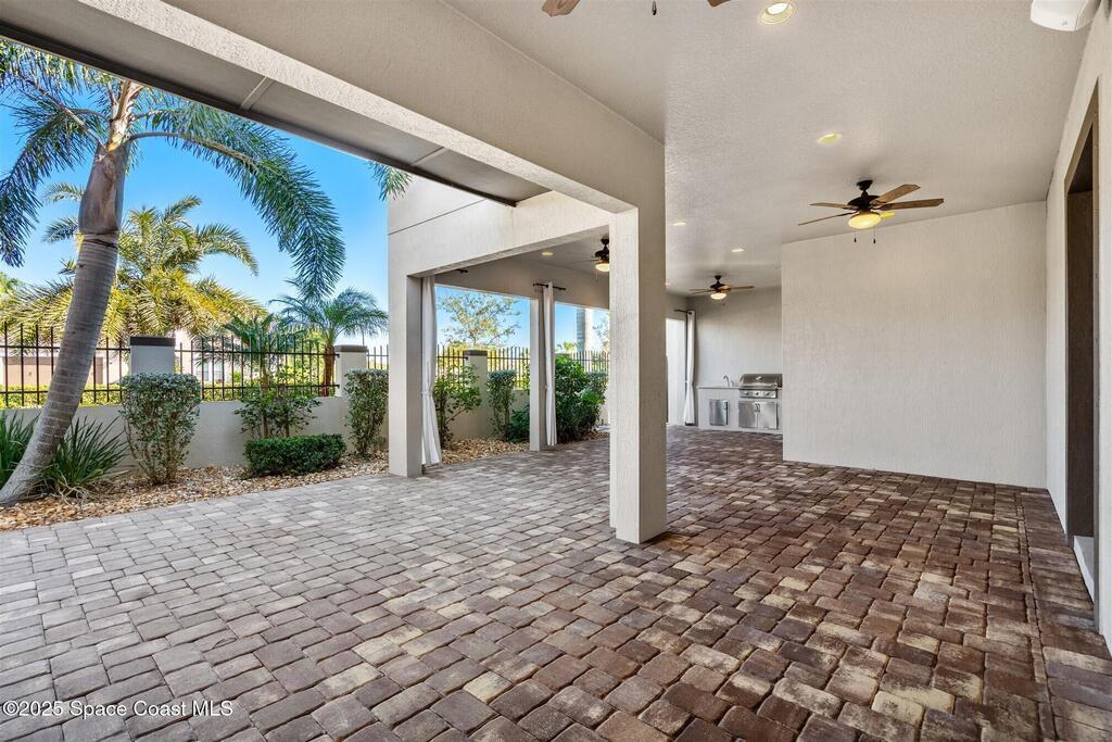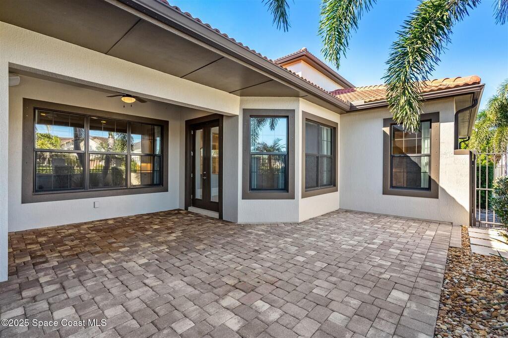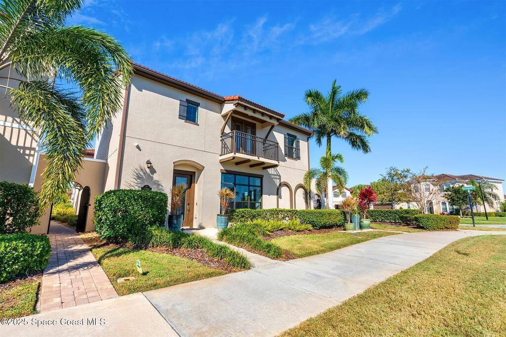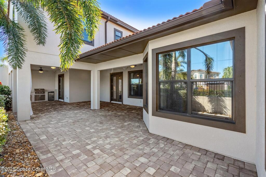 A standout in Viera's sought-after Reeling Park neighborhood, this spectacular 4/5 former model offers over $200K in contemporary upgrades and luxurious living spaces. As you enter through the foyer and pass the office, you're greeted by bright open spaces that draw in soft natural light through the glass front door and windows in the main living spaces. Family gatherings and quiet relaxation are a breeze in the main living space, featuring an electric fireplace and views to the courtyard. The modern kitchen features stainless steel appliances, gas cooktop, vented hood, white cabinetry, quartz counters, and a walk-in pantry. Step outside through the French doors to find a breezy, covered retreat equipped with paver flooring and a summer kitchen, perfect for summertime entertaining. The first-floor primary suite includes an incredible walk-in closet and a spa-like ensuite bathroom with glass and tile shower and soaking tub. . Upstairs, enjoy function and flexibility SEE ''MORE''