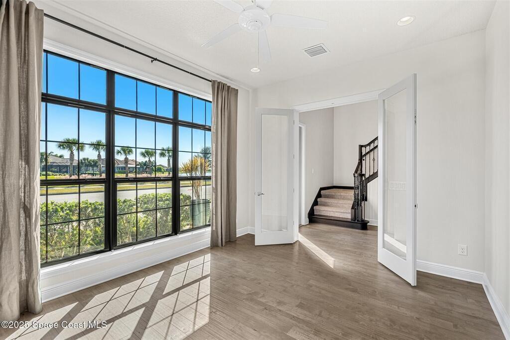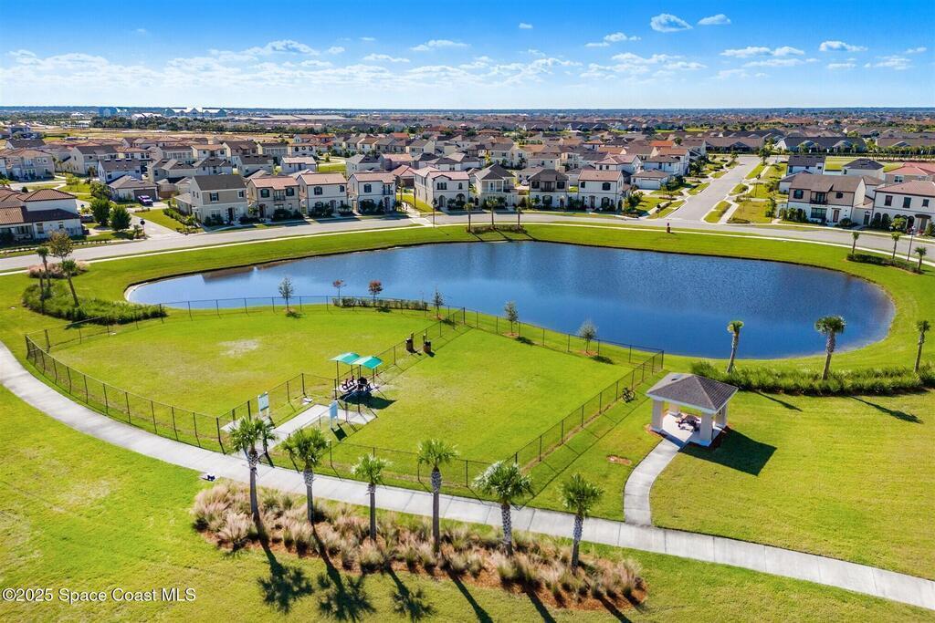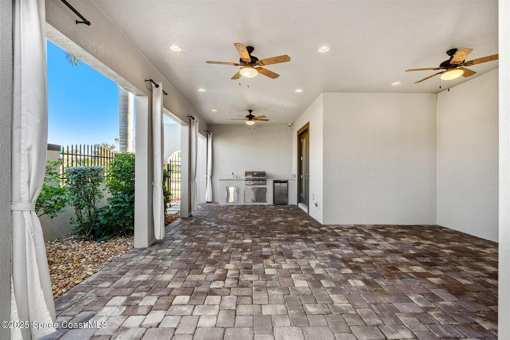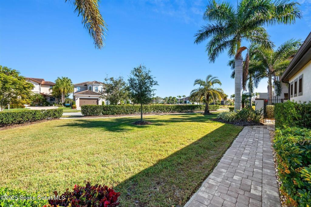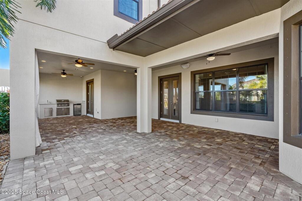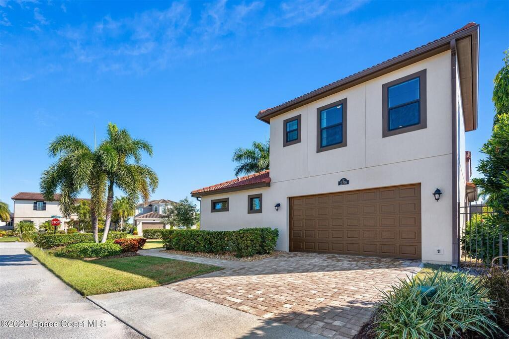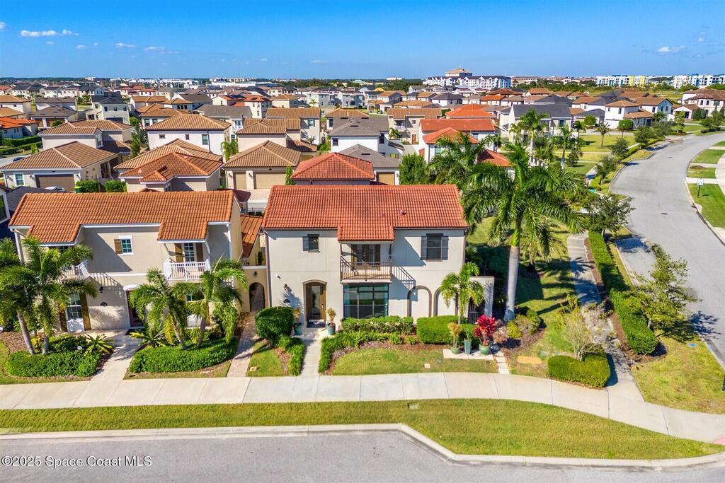 A standout in Viera's sought-after Reeling Park neighborhood, this spectacular 4/5 former model offers over $200K in contemporary upgrades and luxurious living spaces. As you enter through the foyer and pass the office, you're greeted by bright open spaces that draw in soft natural light through the glass front door and windows in the main living spaces. Family gatherings and quiet relaxation are a breeze in the main living space, featuring an electric fireplace and views to the courtyard. The modern kitchen features stainless steel appliances, gas cooktop, vented hood, white cabinetry, quartz counters, and a walk-in pantry. Step outside through the French doors to find a breezy, covered retreat equipped with paver flooring and a summer kitchen, perfect for summertime entertaining. The first-floor primary suite includes an incredible walk-in closet and a spa-like ensuite bathroom with glass and tile shower and soaking tub. . Upstairs, enjoy function and flexibility SEE ''MORE''