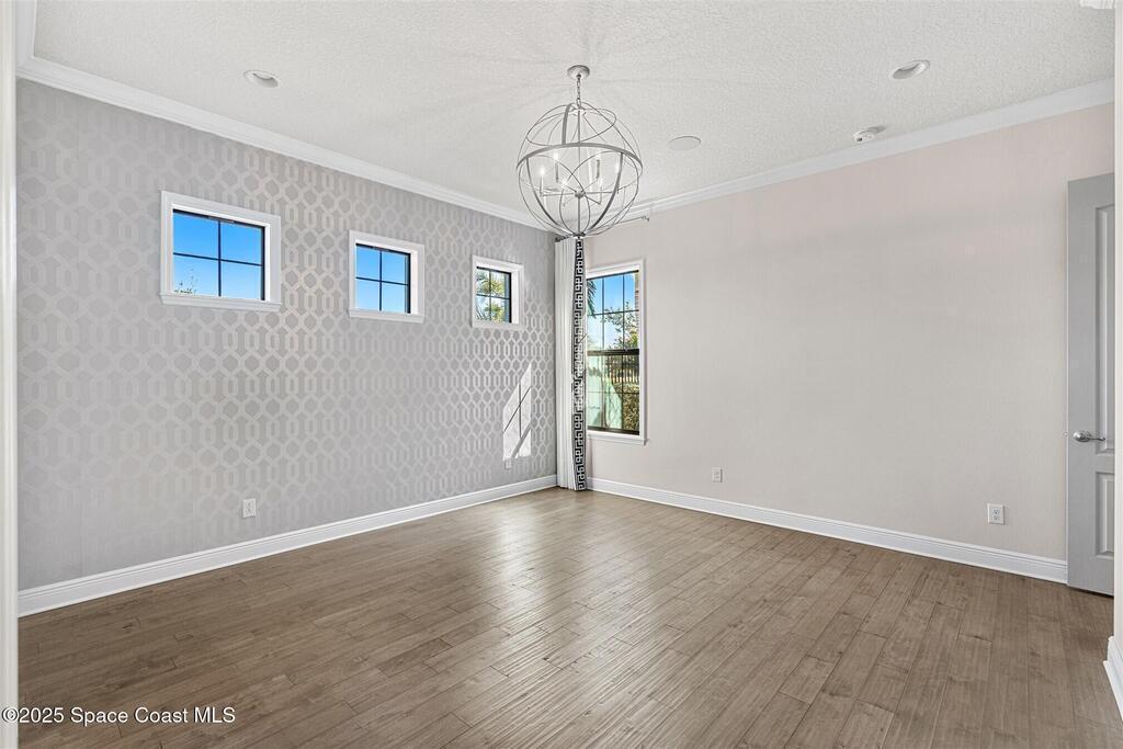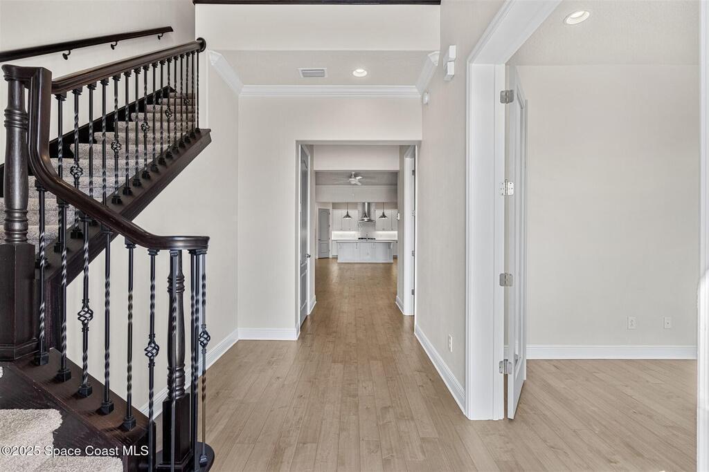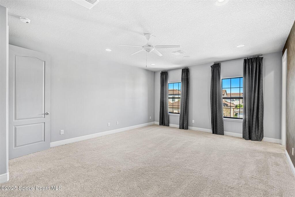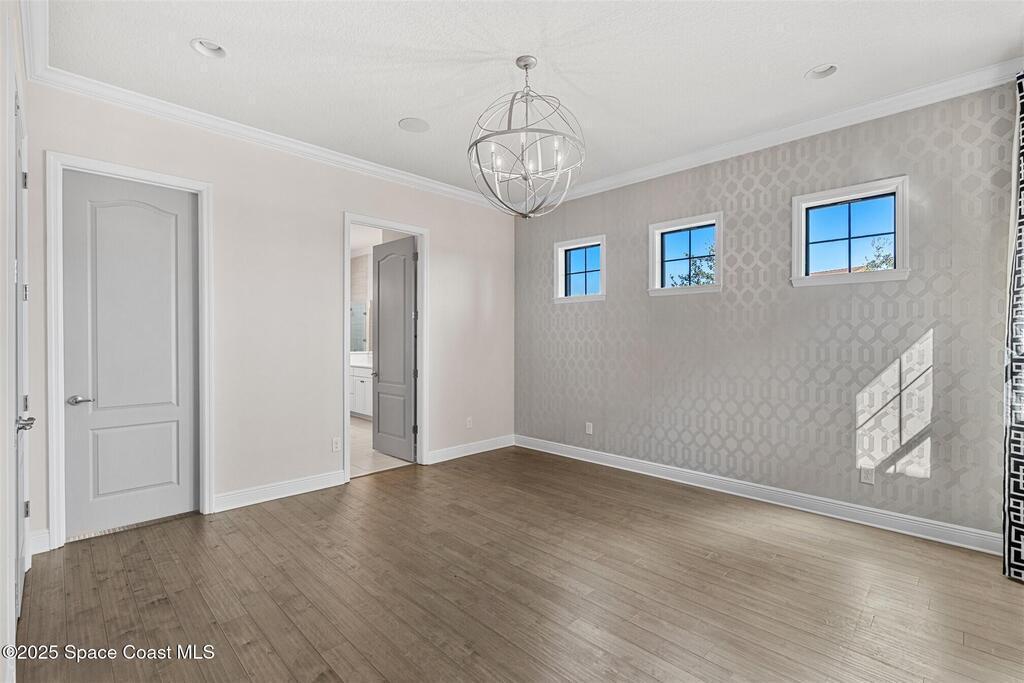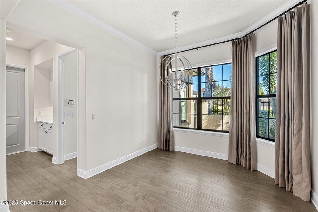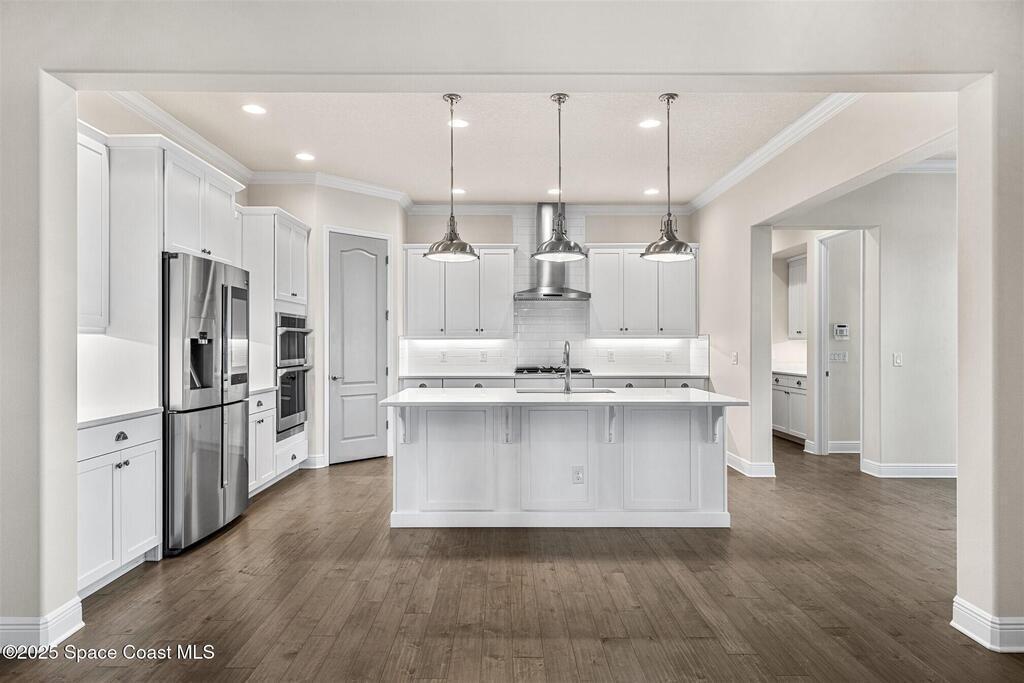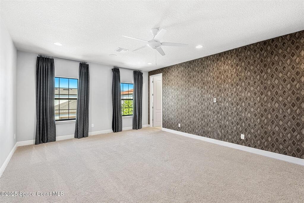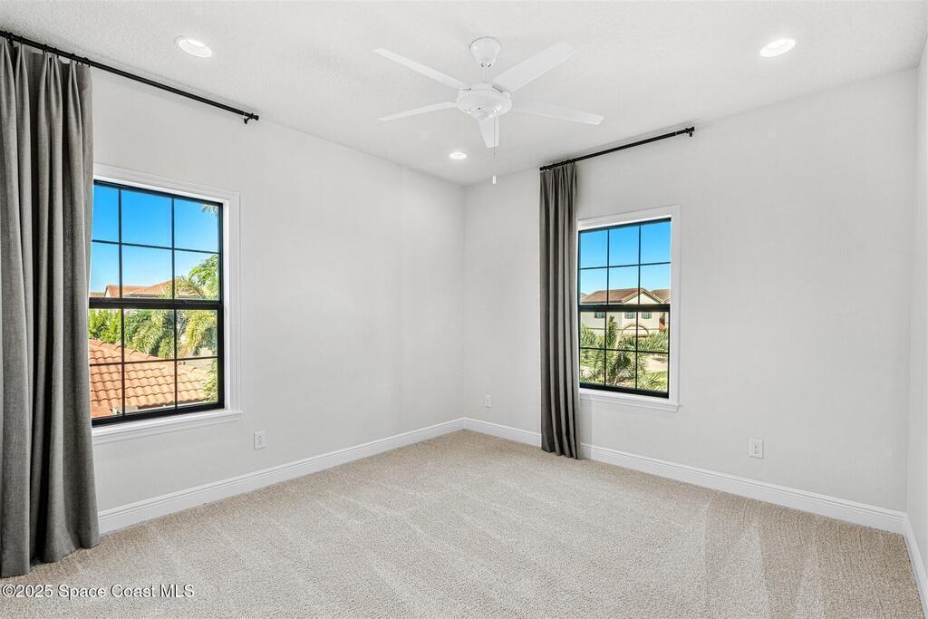 A standout in Viera's sought-after Reeling Park neighborhood, this spectacular 4/5 former model offers over $200K in contemporary upgrades and luxurious living spaces. As you enter through the foyer and pass the office, you're greeted by bright open spaces that draw in soft natural light through the glass front door and windows in the main living spaces. Family gatherings and quiet relaxation are a breeze in the main living space, featuring an electric fireplace and views to the courtyard. The modern kitchen features stainless steel appliances, gas cooktop, vented hood, white cabinetry, quartz counters, and a walk-in pantry. Step outside through the French doors to find a breezy, covered retreat equipped with paver flooring and a summer kitchen, perfect for summertime entertaining. The first-floor primary suite includes an incredible walk-in closet and a spa-like ensuite bathroom with glass and tile shower and soaking tub. . Upstairs, enjoy function and flexibility SEE ''MORE''