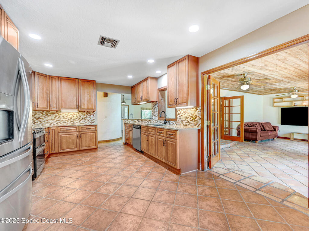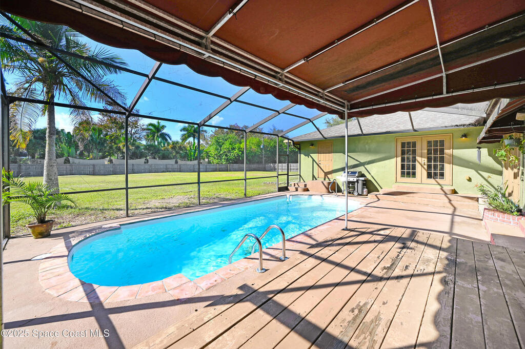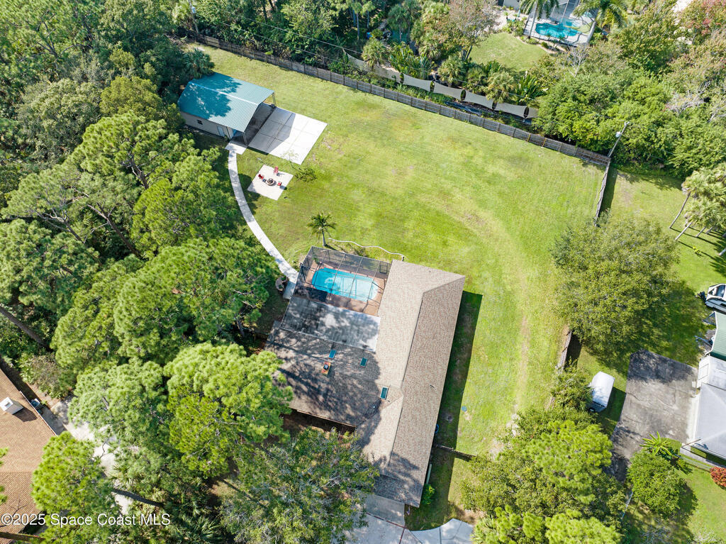 You just found the perfect home! Welcome to 1829 Laurel Oak Drive S. a truly exceptional property. Spacious 4 bedroom 3 bath block pool home on over 1.1 acre lot in Timbers-West on a quiet cul-de-sac street with circular driveway & NO HOA! Enjoy 3,080 sq. ft. of living space featuring a sprawling floor plan, Double sided fireplace and a gourmet kitchen perfect for entertaining. The primary suite offers a private retreat with sitting area while additional bedrooms provide room for family, guests or a home office. One of the bedrooms and bathroom have a separate exterior entrance making for in-law suite or other income opportunities. Step outside to your backyard oasis with an in-ground pool, fire pit, and fully fenced yard with chickens allowed! A detached 2-car garage offers extra storage or workshop space. Plenty of room for RVs, boats, or future additions. Located close to Viera shopping, dining, good schools, I-95, and a short drive to the beaches of the Space Coast. Do not wait !