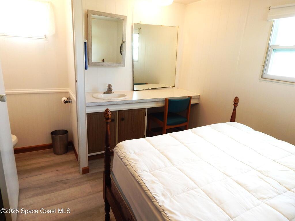 Upgraded 3 Bed 1 1/2 bath in Palm Bay Estates, a 55 and over waterfront community, is ready for its new owner. Upgrades include new exterior paint, an extended carport, and new plumbing from the main to the home. A new roof, kitchen counter tops, bottom cabinets, and the pantry cabinet. New roof, laminate flooring, interior paint, a new hot water heater, and new carpeting. New vanity and sink in the main bathroom with new paint in the half bath. 5 New Hurricane impact windows were also added. Sit out on the screened-in patio to enjoy the breeze, or take a stroll down the street to the waterfront and enjoy the picnic area. Don't have to worry about the northern weather in Florida. Enjoy the heated pool or go up to the boat yard for some fishing. RV parking and boat storage for a fee, depending on availability, or hang your kayak on the rack. Bring your buyers in; they won't be disappointed.