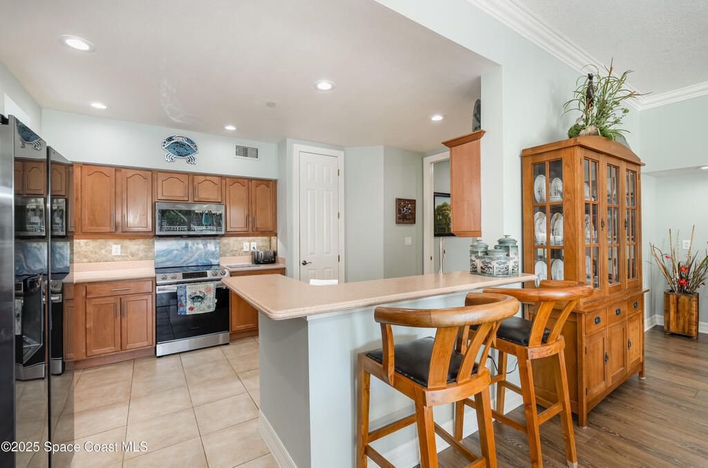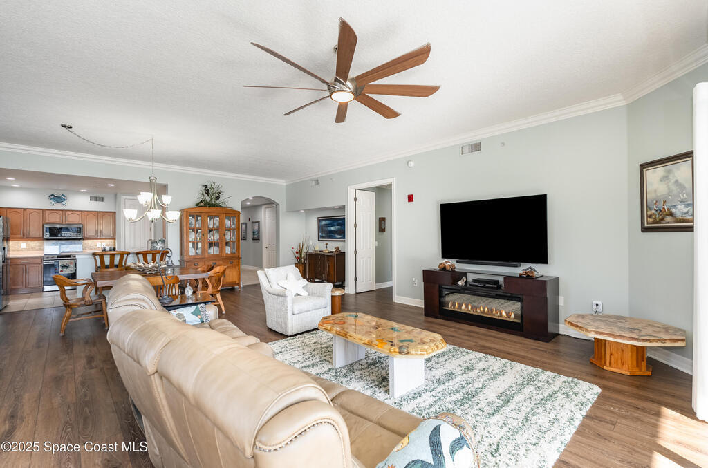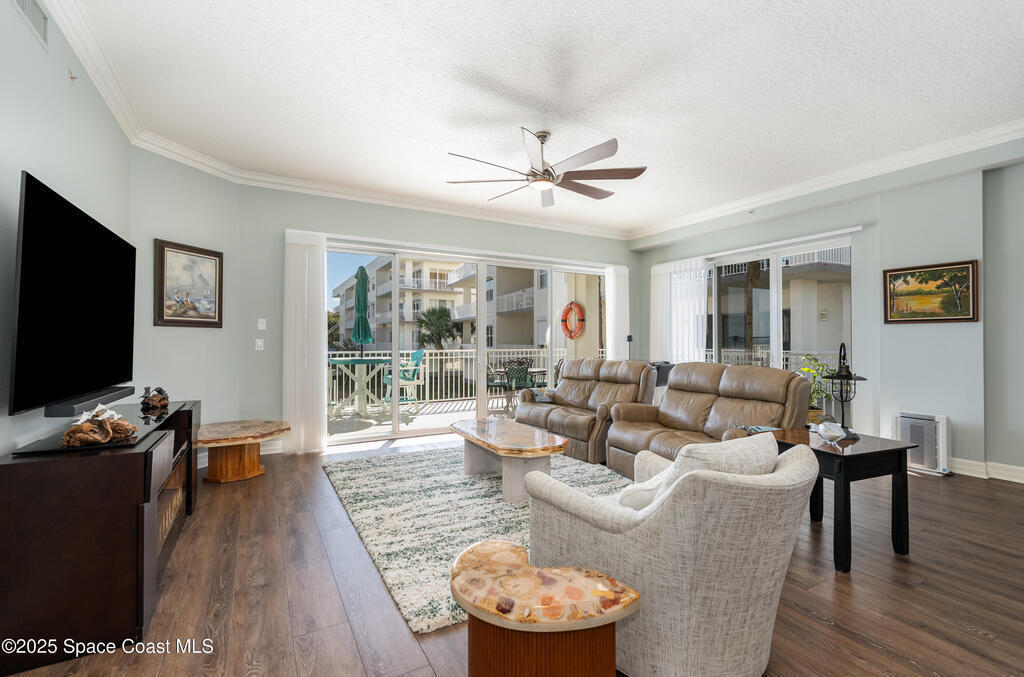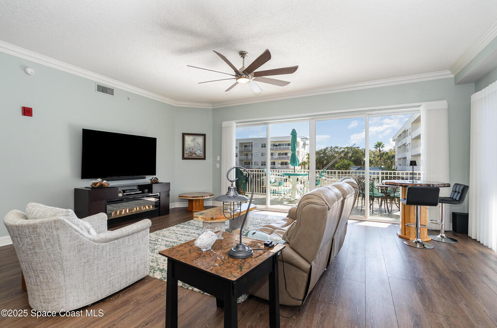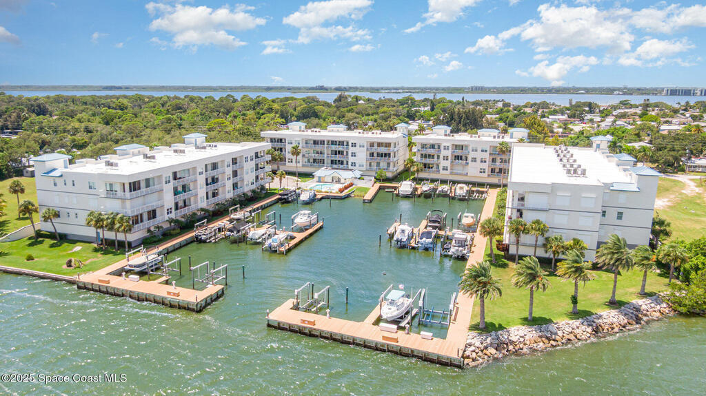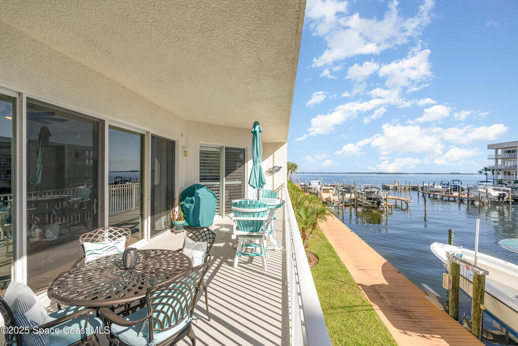 This Riverfront Beauty is Just 5 Minutes from the Beach!Experience coastal living in this spacious 3-bedroom, 3-bath condo featuring soaring 10-foot tray ceilings and an oversized wraparound balcony overlooking both the marina and the Banana River.The bright and airy great room is lined with 8-foot sliding glass doors on two sides, filling the space with natural light and framing views of the marina. All windows and doors are hurricane-impact rated for peace of mind, and the elegant window treatments allow you to control the light and privacy with ease.The chef's kitchen is designed for both style and function, with solid-surface countertops, a separate pantry, and a breakfast bar. The master suite features a spacious bathroom with a soaking tub, walk-in shower, and dual sinks plus a walk-in closet and additional linen closet.A separate laundry room, balcony storage, ceiling fans, vinyl plank flooring and tile add both durability and charm to every room (Boat Slip Available)