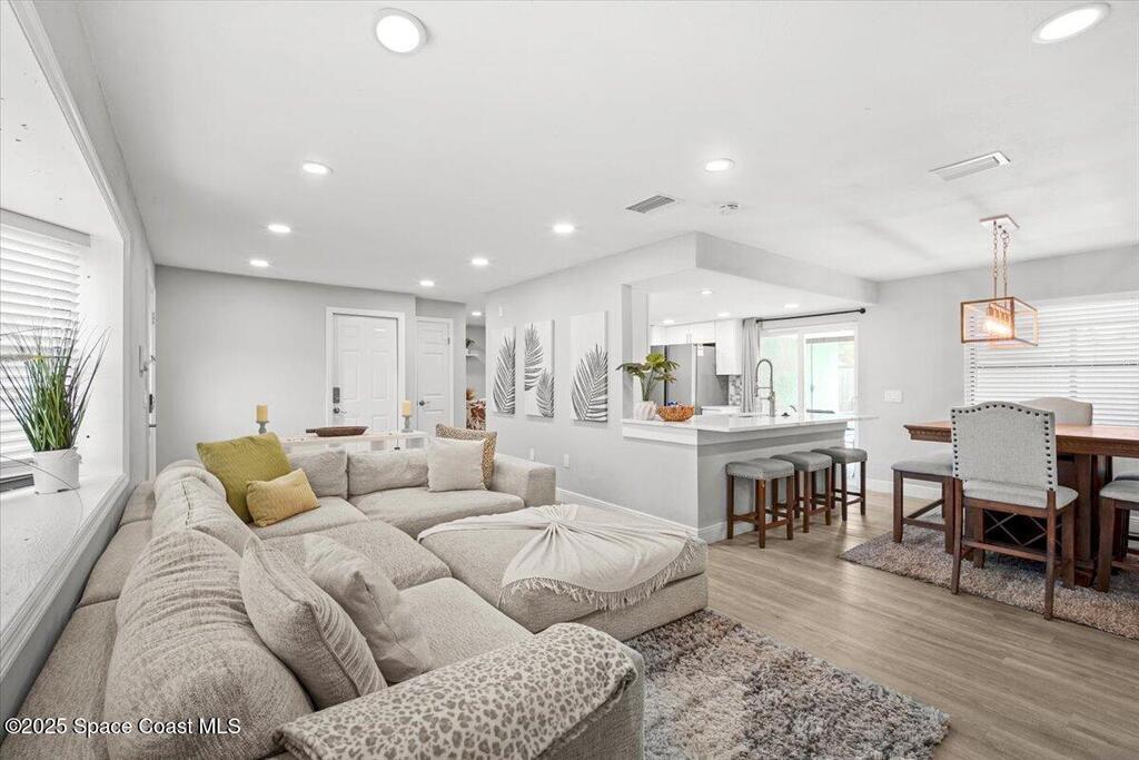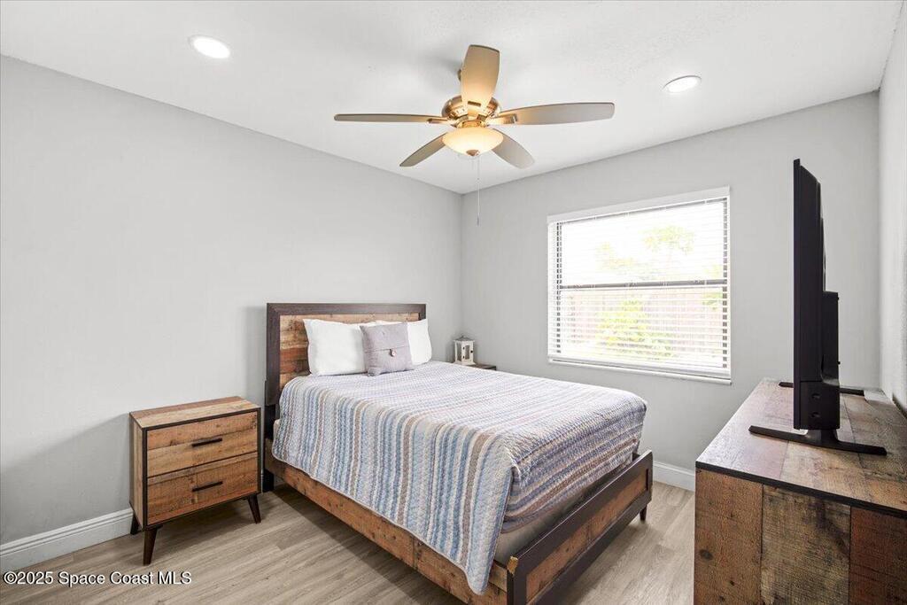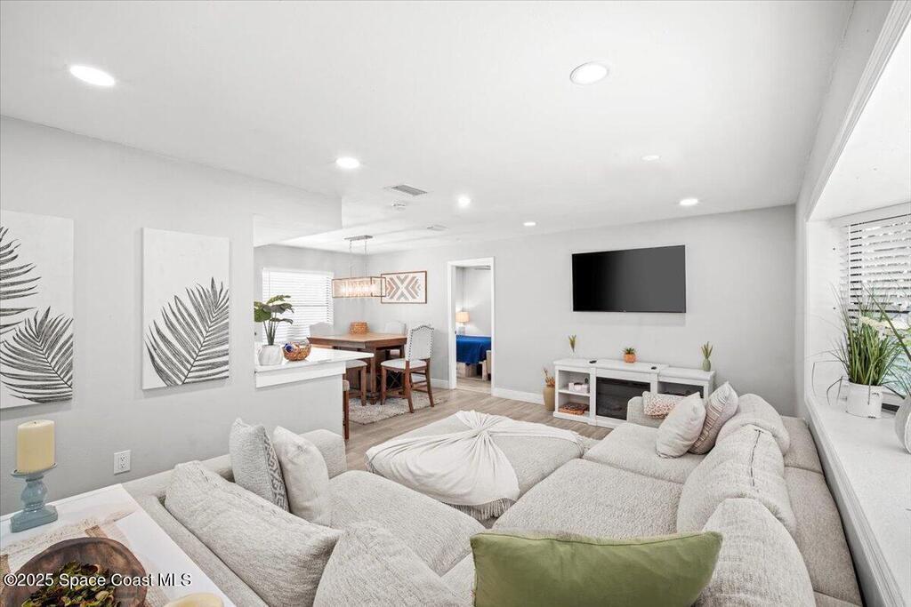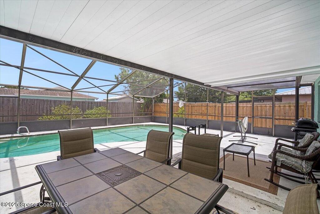 Beautifully renovated 4 bed, 2 bath pool home just 4 miles from the beach! This versatile property is perfect as a turnkey Airbnb, long-term rental, or primary residence. VA assumable loan available at 4.13%. Enjoy major upgrades including a 2023 AC, all-new ductwork (2025), and a new pool pump, filter, and chlorinator. The fenced backyard features a screened pool enclosure, and with no HOA, no deed restrictions, and no flood insurance required, you'll have total flexibility. Inside offers LVP flooring, white shaker cabinets, quartz countertops, stainless steel appliances, modern fixtures, LED lighting, and new blinds. A bright, open layout provides pool views from the kitchen, living, and dining areas. The large driveway offers room for boat parking. Located on a quiet street close to parks, trails, schools, hospitals, shopping, and restaurants. Don't miss this beautiful modern coastal retreat!