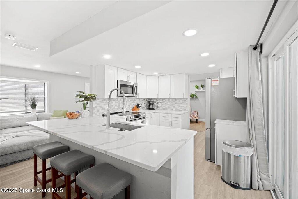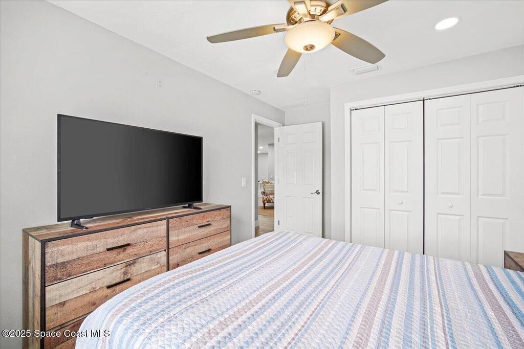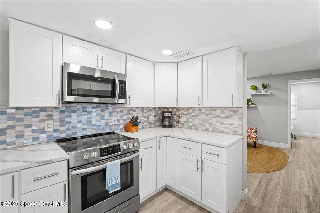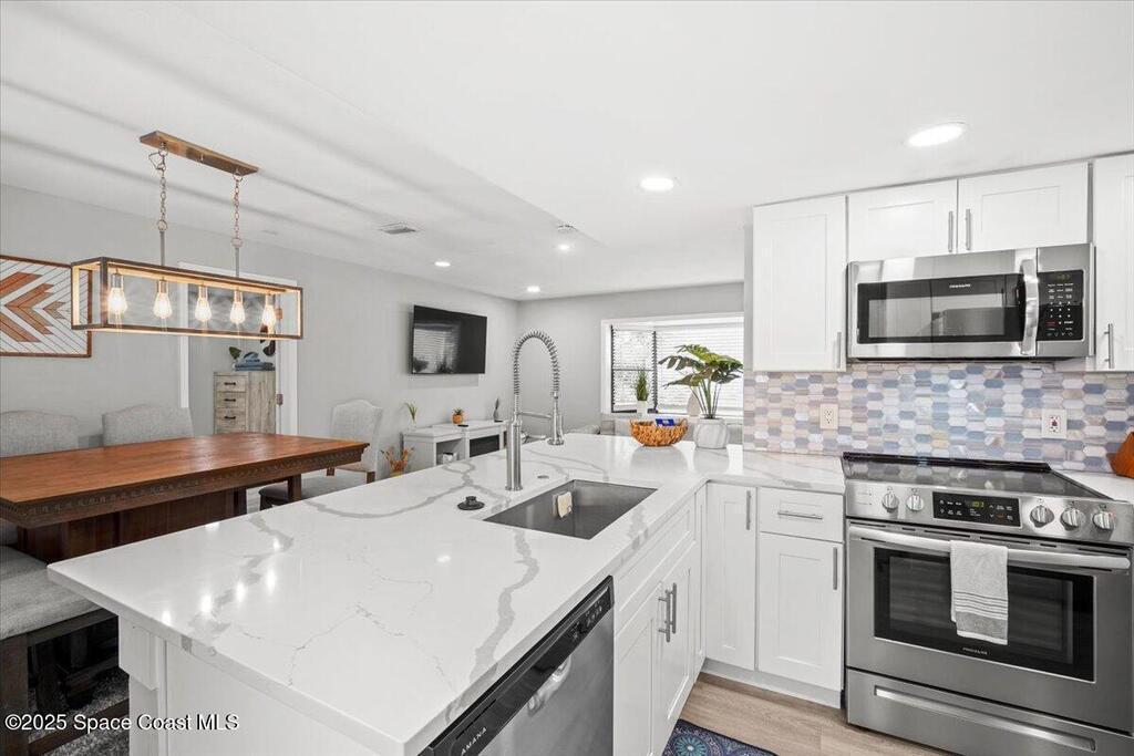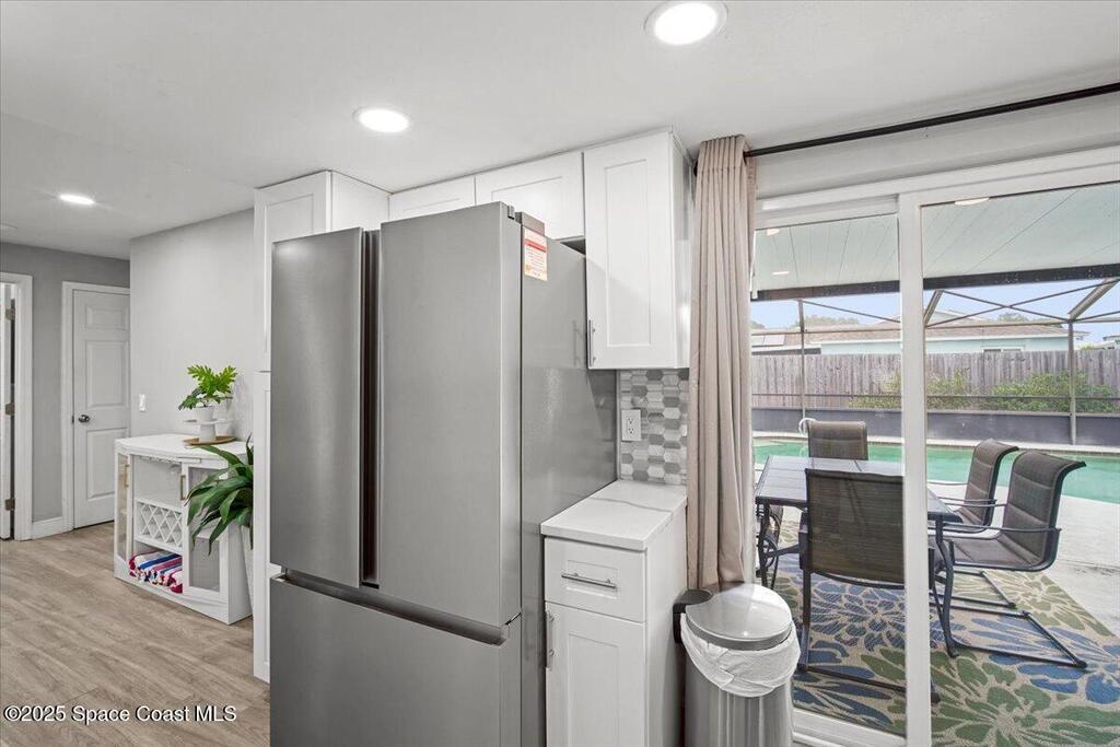 Beautifully renovated 4 bed, 2 bath pool home just 4 miles from the beach! This versatile property is perfect as a turnkey Airbnb, long-term rental, or primary residence. VA assumable loan available at 4.13%. Enjoy major upgrades including a 2023 AC, all-new ductwork (2025), and a new pool pump, filter, and chlorinator. The fenced backyard features a screened pool enclosure, and with no HOA, no deed restrictions, and no flood insurance required, you'll have total flexibility. Inside offers LVP flooring, white shaker cabinets, quartz countertops, stainless steel appliances, modern fixtures, LED lighting, and new blinds. A bright, open layout provides pool views from the kitchen, living, and dining areas. The large driveway offers room for boat parking. Located on a quiet street close to parks, trails, schools, hospitals, shopping, and restaurants. Don't miss this beautiful modern coastal retreat!