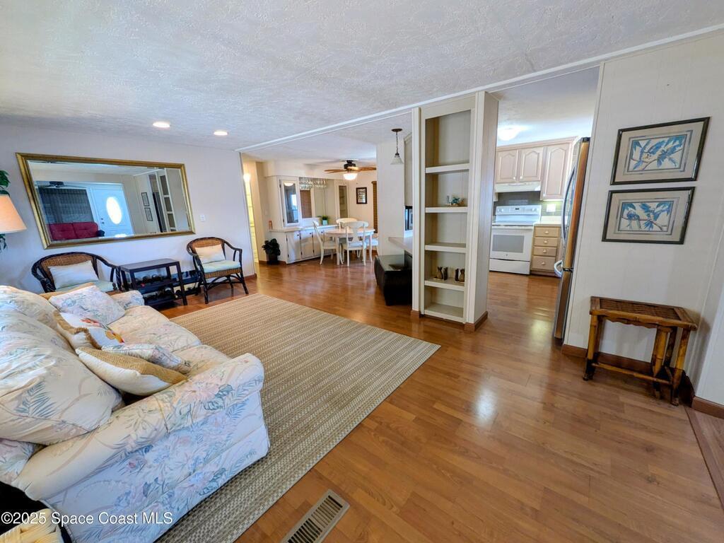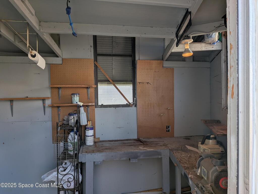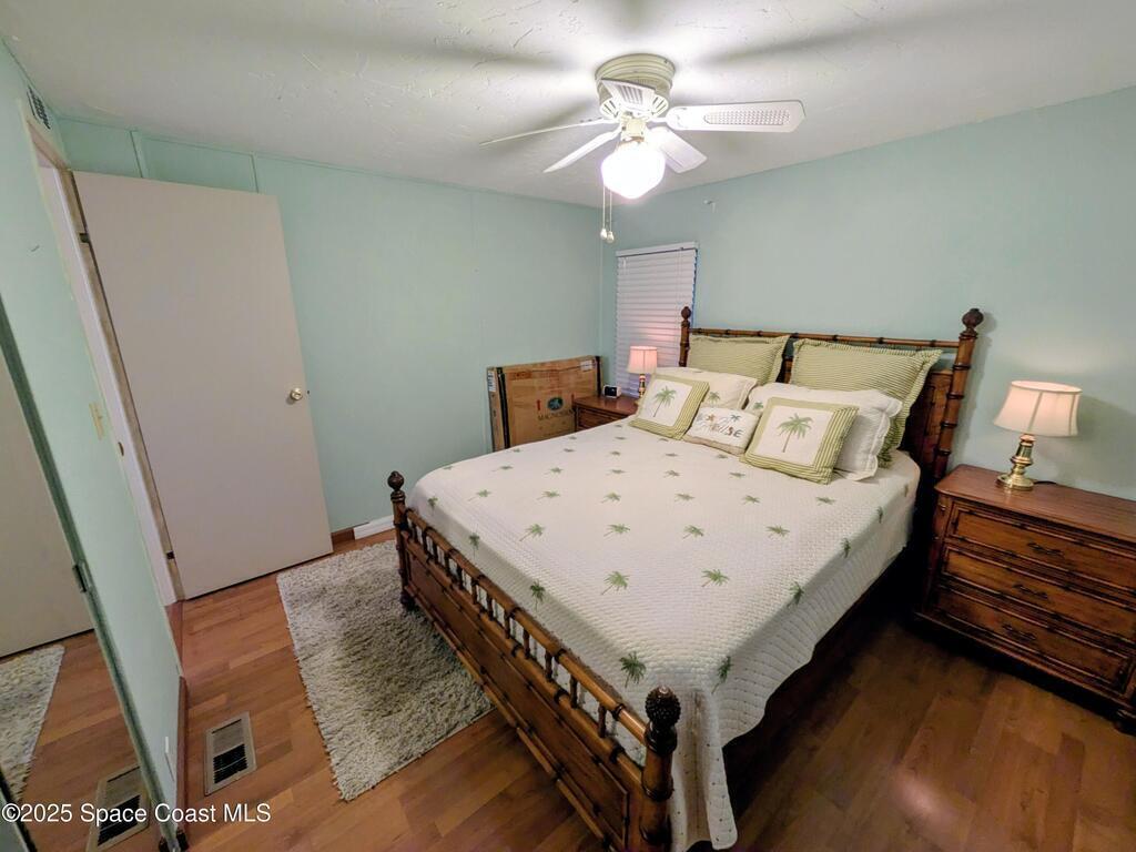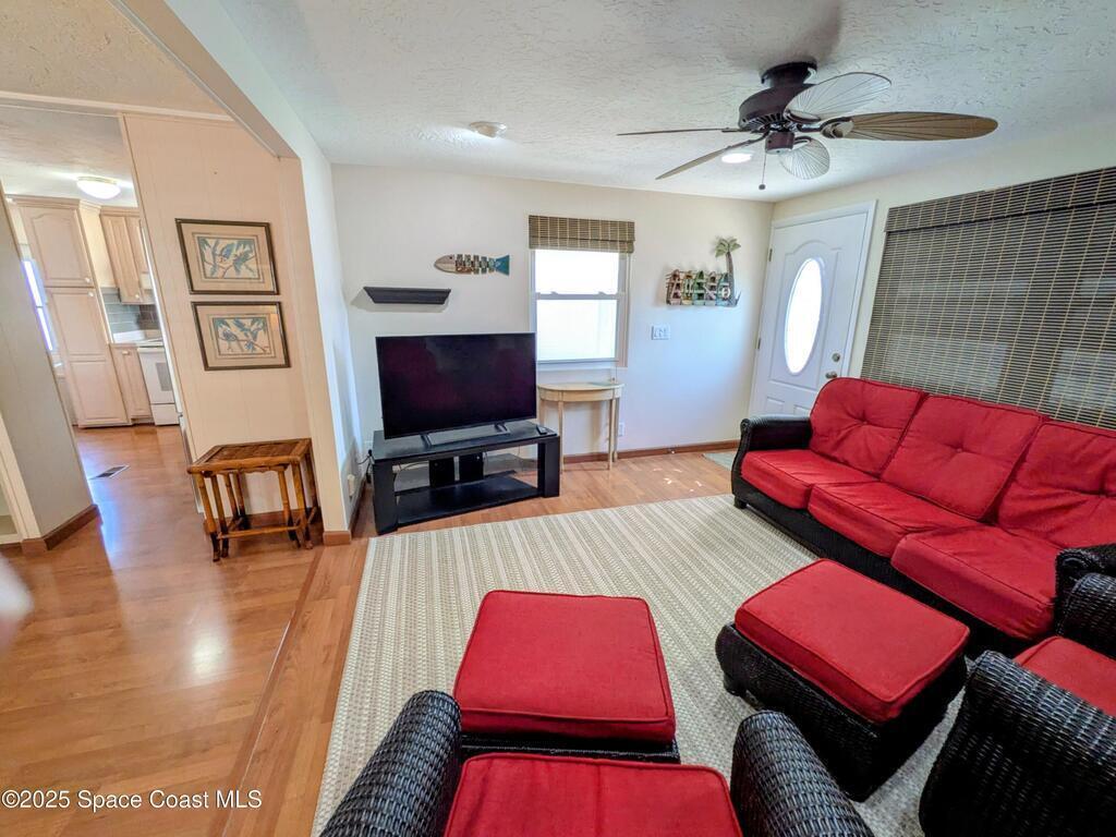 Looking for a sunny escape from brutal winters? This 55+ 2-bed, 2-bath in Leisure Living Estates is the perfect warm-weather retreat - you OWN THE LAND!This home has been well cared for, with major updates already done: a new standing-seam metal roof (2023), new skirting (2023), and a 2020 A/C system. Inside, you'll find no carpeting, updated bathrooms, and tons of built-in storage. The in-unit washer/dryer and the workshop w/ laundry sink & built-in workbench.Parking is a breeze with a carport plus extra driveway space. Even better, it's sold fully furnished, so you can move right in and start soaking up the Florida sunshine.The HOA is just $142/month and covers lawn care, landscaping, basic cable, and internet - a fantastic value.Cast a line from the community fishing pier. Pick fruit from your own banana tree. Walk across the street for deeded beach access, or stop by the community clubhouse for activities and gatherings.