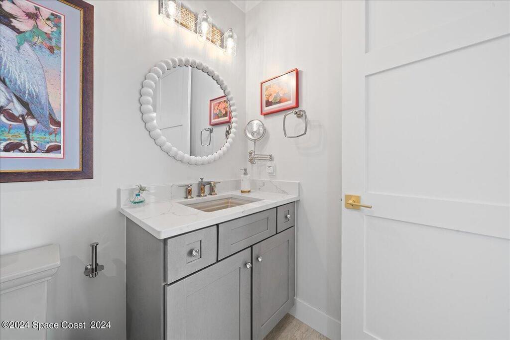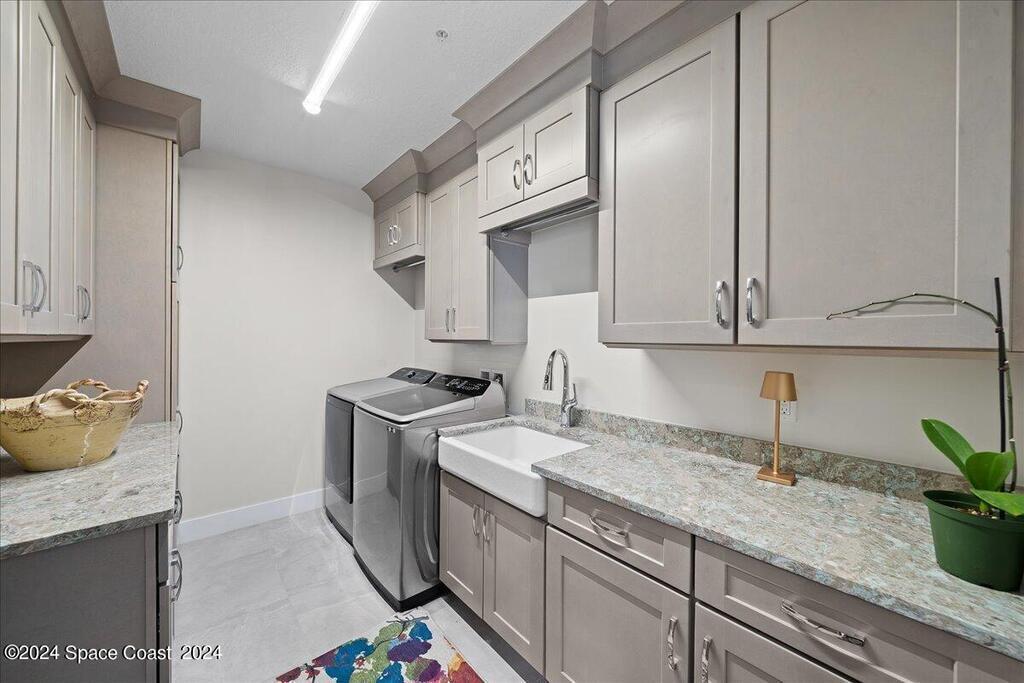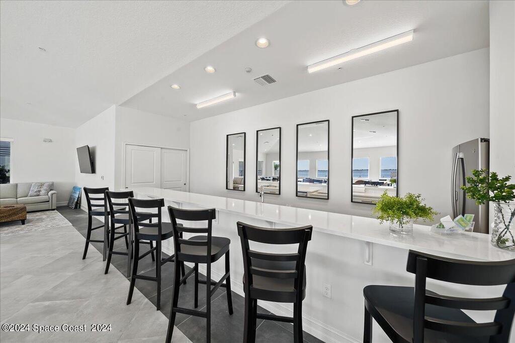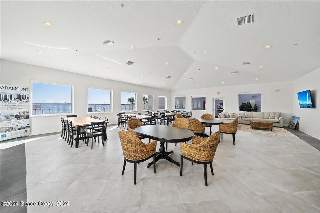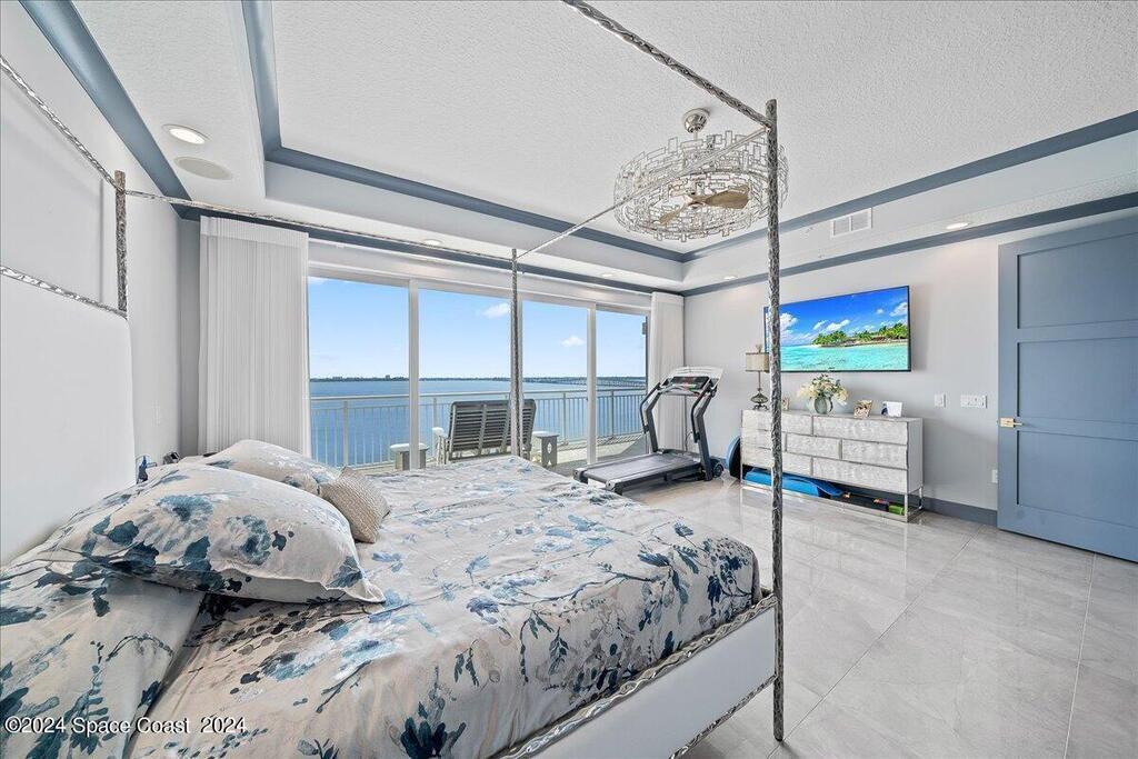 Experience elevated waterfront living in this stunning corner penthouse.This elegant home welcomes you with a beautiful hand laid marble floor highlighted by designer chandeliers lighting your way to a spacious open concept living area with floor to ceiling sliding doors.They showcase breathtaking views of the Indian River and rocket launches.The gourmet kitchen includes an induction cooktop and custom cabinets with pullout shelving.The master suite offers a private balcony, two walk-in closets, a shoe closet, spa bath, bidet and designer tile finishes. Two secondary en suite bedrooms, an office and art studio complete the living space.There are quartz countertops,electric window treatments,upgraded plumbing and light fixtures in every room.A see through fireplace separates the living and family areas. Sip your morning coffee watching beautiful sunrises or enjoy cocktails from your full bar with pull out shelves and its own refrigerator, freezer, wine cooler and nugget ice maker.
