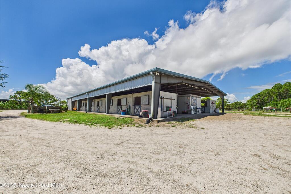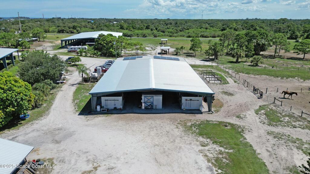Experience an unmatched equestrian estate fully fenced with gated entry and beautiful views of the Indian River. The 3 bedroom 3 bath main home offers 2 flex rooms, full solar, & 3092sq ft under air. Five large pastures + 8 smaller paddocks provide exceptional turnout with roomy shelters, cross fenced areas, mature fruit trees, and wide open training space. The main barn features 16 stalls, 2 tack rooms with individual lockers, organized storage, 2 wash racks, and private 3 bedroom 2 bath 1400sq ft living quarters ideal for trainer or staff housing. Additional barns include 16 stalls in the north lower barn, 10 stalls in the south lower barn with a shop and storage room, plus 13 combined stalls in the north & south pasture barns. A covered dressage arena and a covered jump arena offer lights, sprinklers, arena mirrors, and viewing pavilions. A fully enclosed hay barn, feed barn, open air pavilion, ample trailer parking, and income producing versatility complete this premier facility.