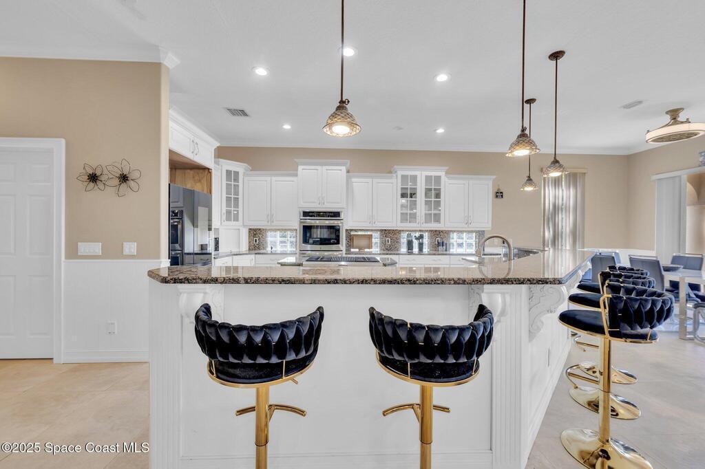 Come live the luxury Cocoa Beach lifestyle right on the Banana River!! Gaze out onto the panoramic mangrove views or watch the dolphins swim by from your new private boat dock with a boat lift & deep water access. 250 ft of riverfront!! Relax by the saltwater pool with spa planning your day at the beach only a few blocks away. This showstopper of a home has plenty of space with 7 bedrooms (2 on the lower level, one upstairs full of bunkbeds) 4.5 baths and just under 5000 sq ft of living space. Not to mention the chef's dream kitchen with gas stove and huge kitchen island. Large 3 car garage with Tesla charger. Hop on your golf cart and cruise to nearby Downtown Cocoa Beach for dining, entertainment and the monthly Friday Fest street festival held on the 3rd Friday of every month. This is the largest home and lot in the Sunset Cove Community. Make your dream beach living a reality today!