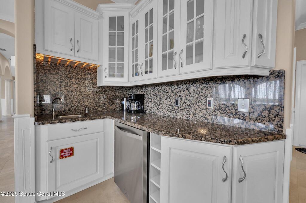 - Exterior FeaturesBalcony, Boat Lift, Dock, Outdoor Kitchen and Storm Shutters