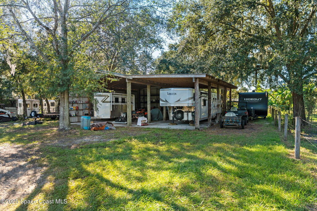 - ParkingCarport, Circular Driveway, Detached, Gated, Off Street, RV Access/Parking and Secured