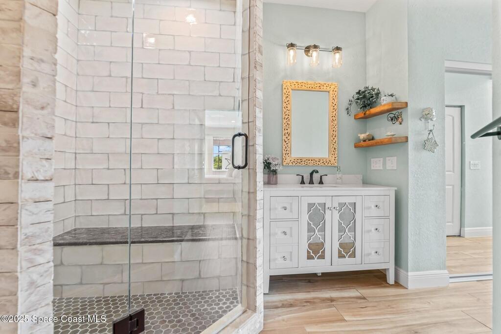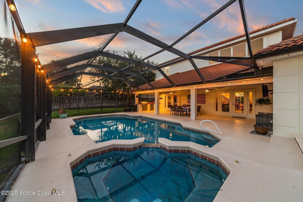Beautiful pool home in the gated community of Casabella! Step inside the grand two-story entrance and enjoy immediate views of the sparkling pool. The recently updated, open-concept kitchen overlooks the dining area and living room, featuring a spacious island, built-in china cabinets, quartz countertops, and a pantry.The inviting family room offers direct access to the expansive screened pool area, complete with a summer kitchen and outdoor shower perfect for entertaining. A convenient half bath is located downstairs.The primary suite is also on the main floor, with private access to the pool and a completely updated spa-style bathroom. Enjoy a luxurious steam shower and an exceptional walk-in dressing room equipped with a wine fridge and bar. A large bedroom off the entry with French doors makes an ideal study or flex room. Upstairs you'll find three generous bedrooms. Two share a Jack-and-Jill bath, while the third features its own bath with shower.