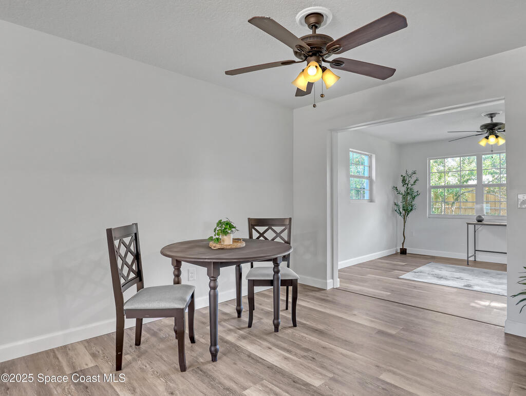 Welcome to your freshly updated 4BED 2 bath home in the heart of Imperial Estates!Step inside this beautiful home and you'll find 2 living spaces, a kitchen that was just updated a few years ago with a GAS stove quartz countertops and solid cabinets. You'll also find 4 bedrooms, a dedicated laundry space and sizeable fenced in back yard with a shedBig tickets items include AC only 2 years old metal roof, TANKLESS water heater only a year old! Every window protected by shutters for peace of mind. New electrical panel just put in! Cosmetic updates include fresh paint, new waterproof vinyl floors, new doors and trim. Close to schools, shopping, parks, Space X, Boeing, Blue Origin and more!