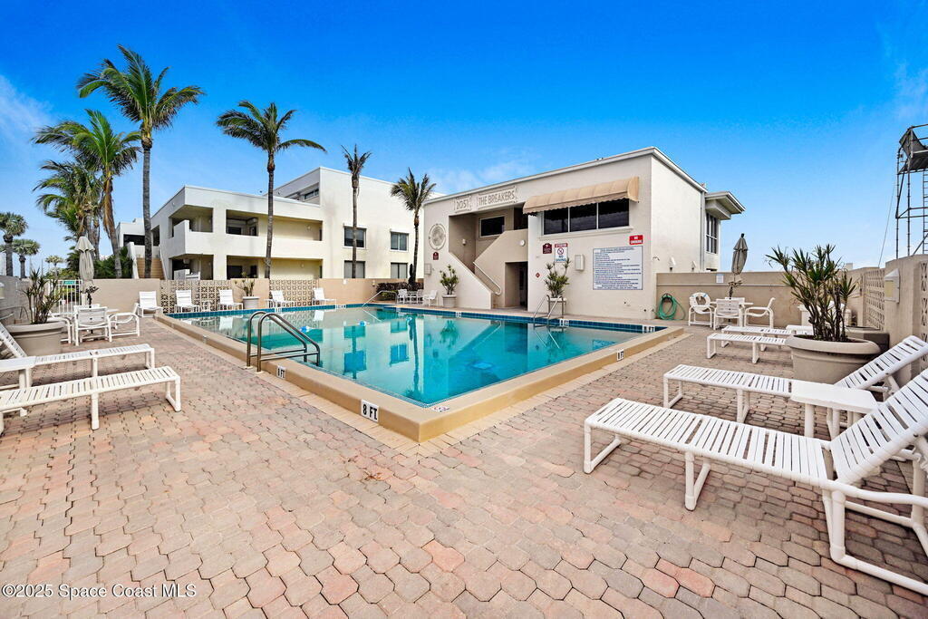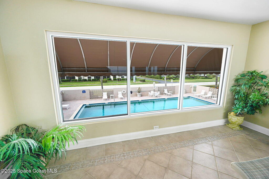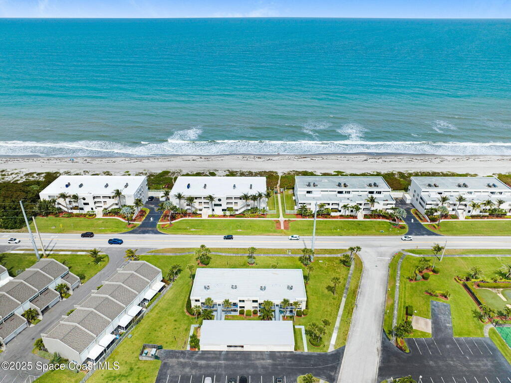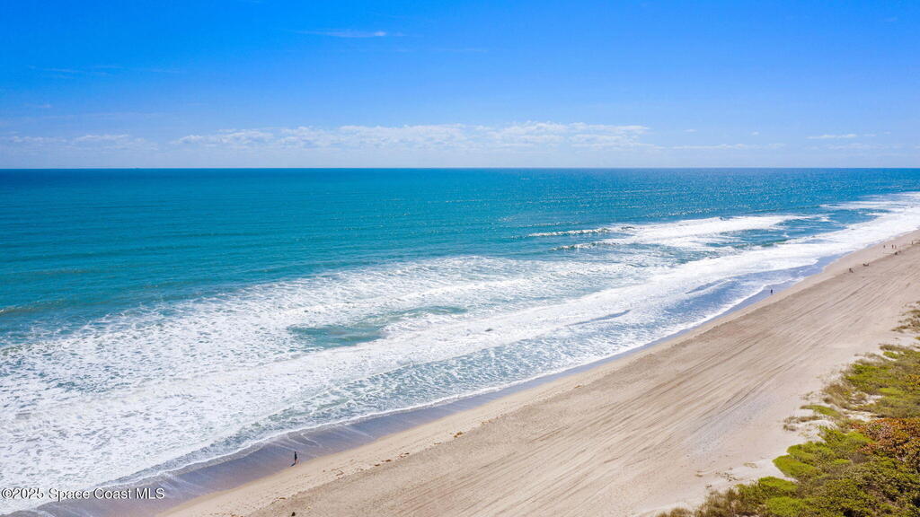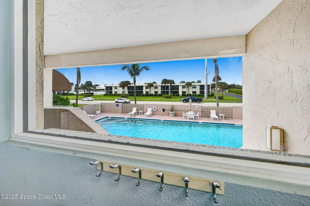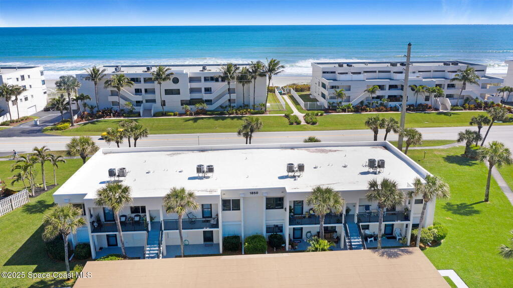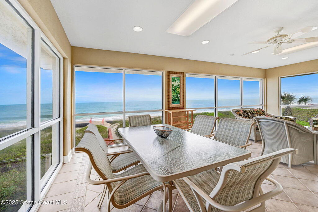 This ground floor, end condo boasts stunning views and is a short walk to the beach. Enjoy ocean breezes from your private screened porch. A new roof was installed by the association in 2025. The community features a pool, fitness center, garages, and extra storage. The HOA covers landscaping, water, high-speed internet, and cable for low-maintenance living. Located on Florida's Space Coast, you'll have front-row seats to rocket launches and easy access to golf, tennis, a library, fishing pier, bike paths, A-rated schools, and dining, just one mile south of Ocean Avenue. Nestled in a secure community, this condo is in the largest sea turtle nesting area, offering the best of coastal Florida living!