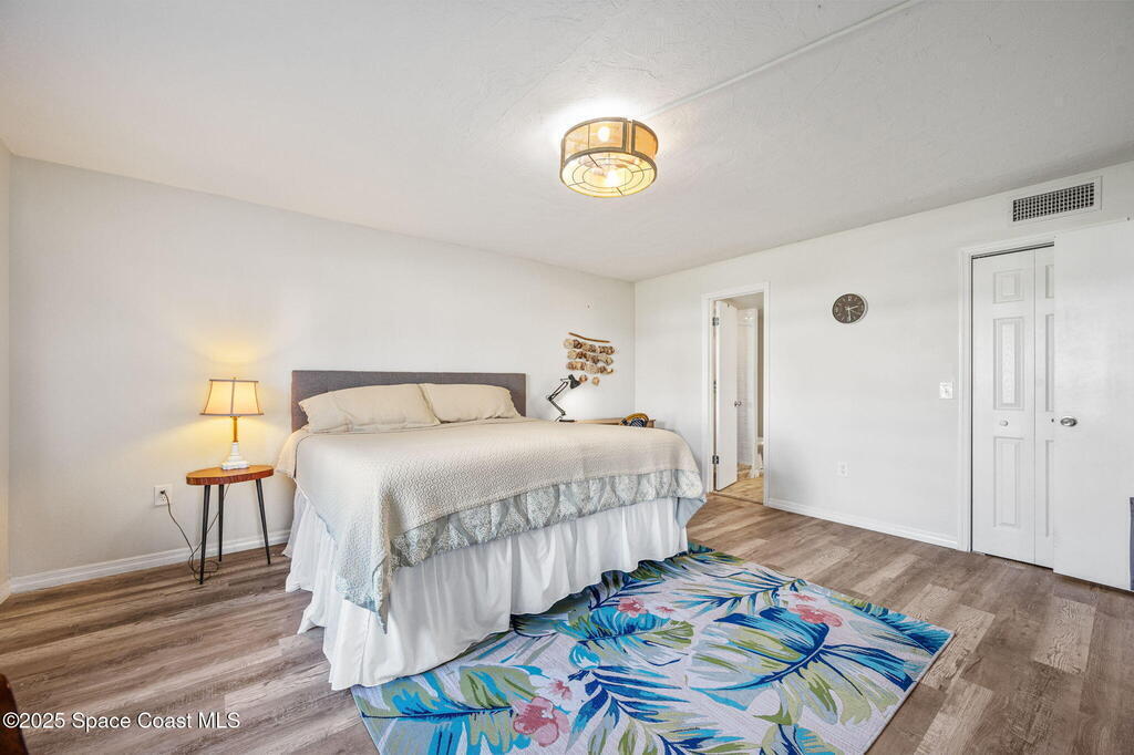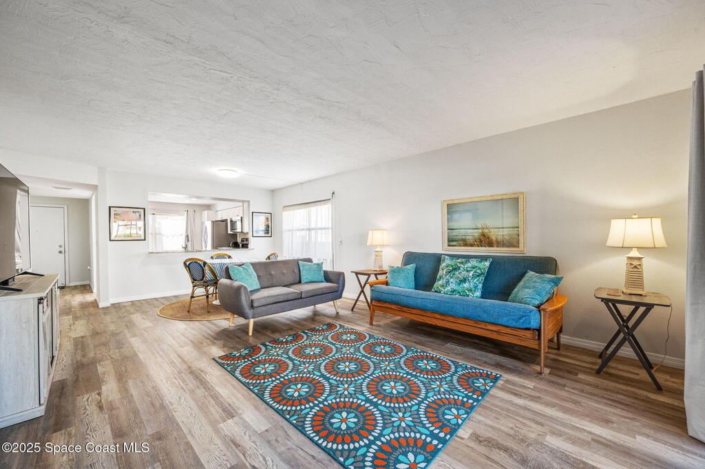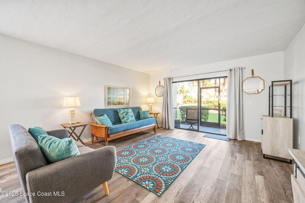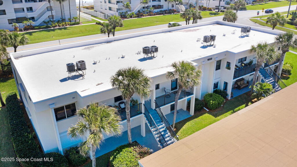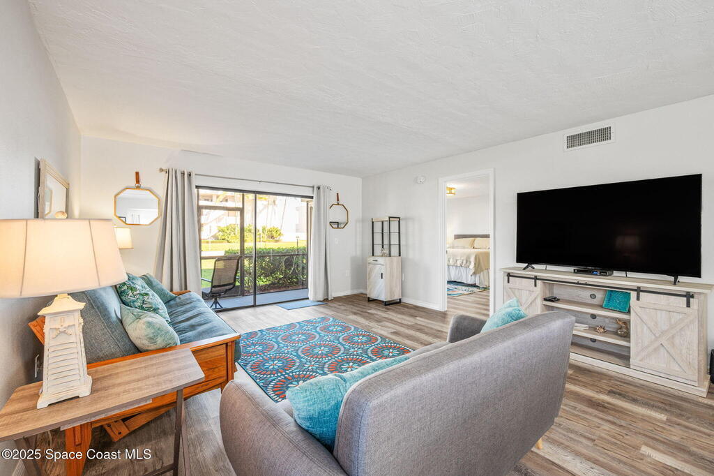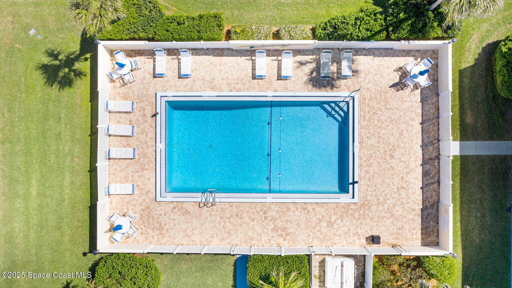 This ground floor, end condo boasts stunning views and is a short walk to the beach. Enjoy ocean breezes from your private screened porch. A new roof was installed by the association in 2025. The community features a pool, fitness center, garages, and extra storage. The HOA covers landscaping, water, high-speed internet, and cable for low-maintenance living. Located on Florida's Space Coast, you'll have front-row seats to rocket launches and easy access to golf, tennis, a library, fishing pier, bike paths, A-rated schools, and dining, just one mile south of Ocean Avenue. Nestled in a secure community, this condo is in the largest sea turtle nesting area, offering the best of coastal Florida living!