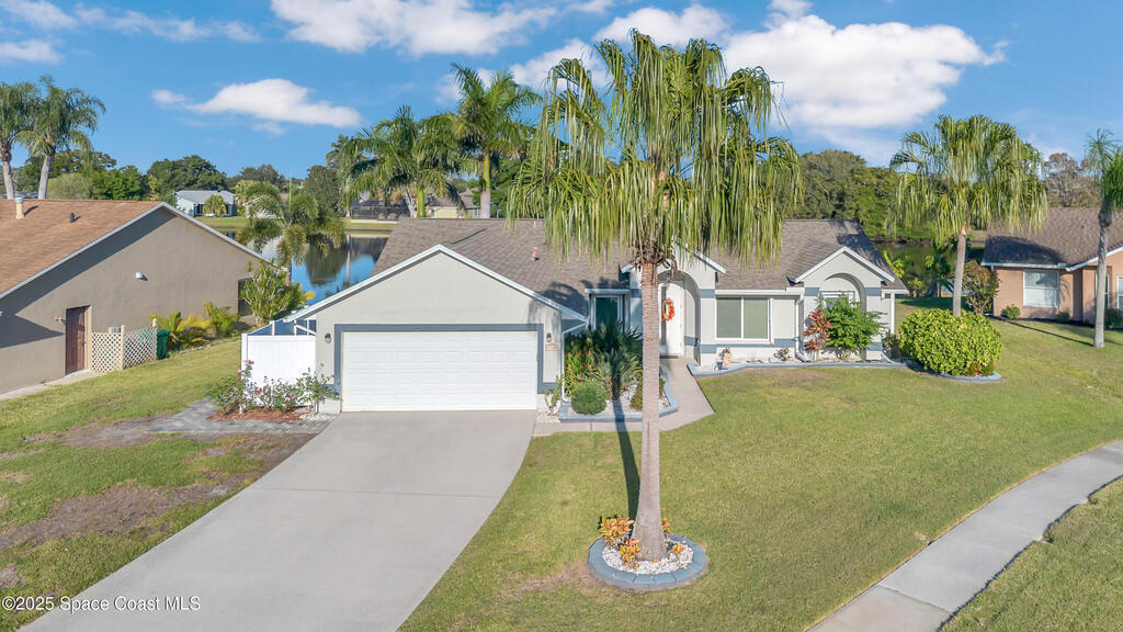 Welcome to this well-maintained home in the sought-after Viera East community. Enjoy a bright, open layout with a spacious kitchen featuring an oversized island perfect for prep and seating. The primary suite offers a comfortable, well-designed retreat, while additional bedrooms provide flexible space for guests, work, or hobbies. Step outside to a large screen-enclosed lanai with an inviting in-ground pool, ideal for relaxing or entertaining. From the backyard, take in stunning rocket launches right from home. Located minutes from shopping, dining, golf, top-rated schools, and the beaches, this property offers the best of Florida living at 1445 Ambra Drive.