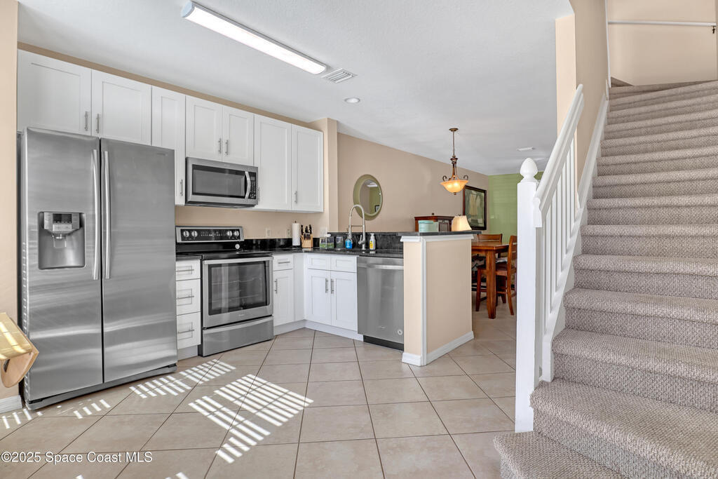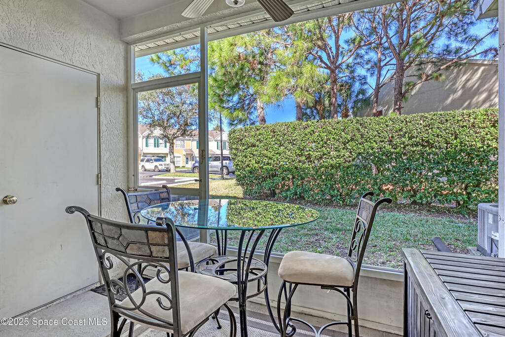 Discover this highly sought-after end-unit townhouse in the heart of Hampton Park, Suntree--a beautifully maintained retreat lovingly cared for by its owners for the past 12 years. Used primarily as a vacation home, the property has seen exceptionally light wear and thoughtful upgrades at every turn.Step inside to find a bright, refreshed interior featuring 2020-2021 kitchen renovations, including crisp white shaker cabinets, granite countertops, and modern tile flooring throughout the main level. Upstairs, the bedrooms and hallway showcase durable and stylish LVP flooring, installed for both comfort and easy maintenance.Both full bathrooms received elegant updates in 2018, complementing the home's cohesive, move-in-ready feel. Major systems are already taken care of--new A/C and hot water heater (2019), hurricane-impact windows (7 total) with new blinds, and a 2018 roof--offering peace of mind for years to come.Tucked within a tree-lined community, this end unit enjoys