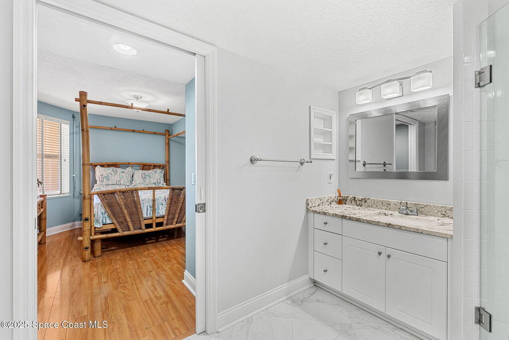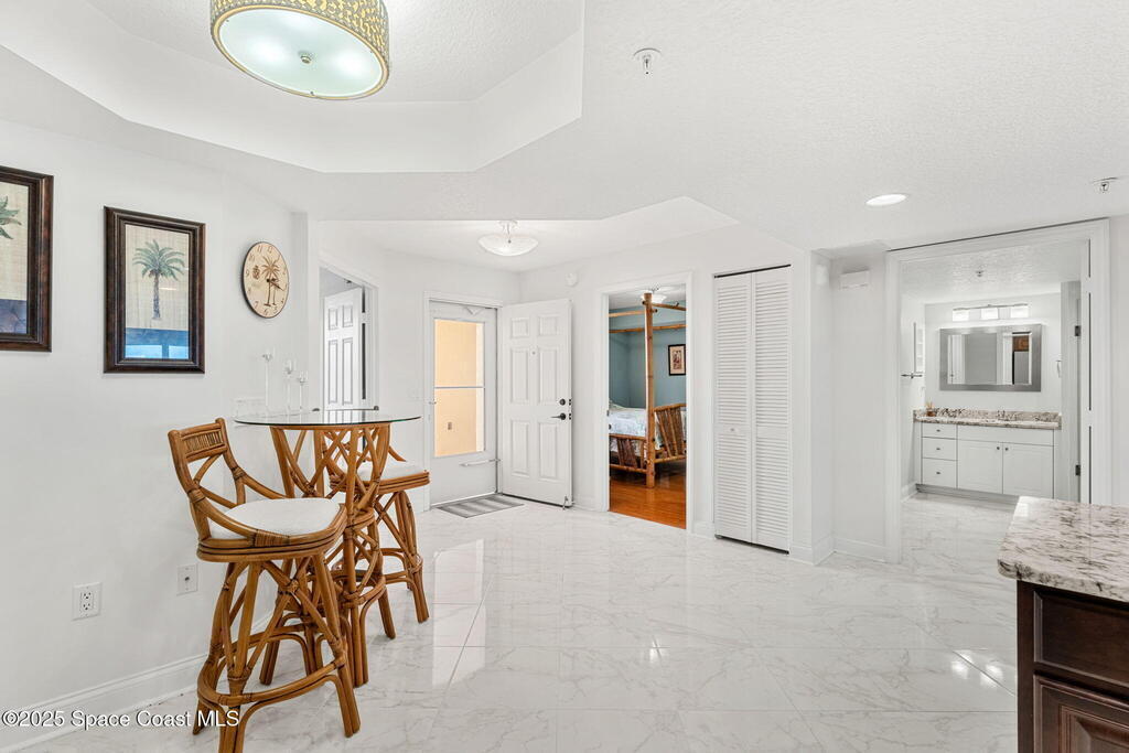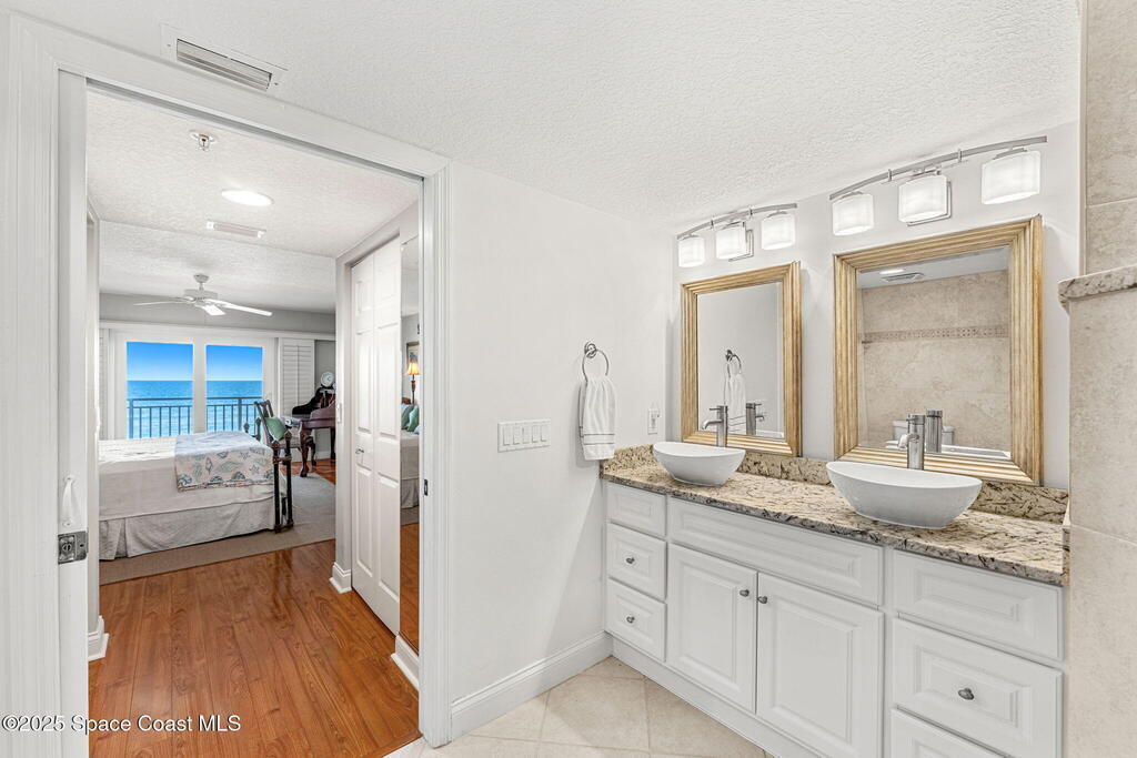 Step into sweeping Atlantic Ocean views the moment you enter this direct oceanfront condo on Florida's Space Coast. This three-bed, two-bath residence offers secured elevator access, a private one-car garage, and additional guest parking. An oversized balcony with storm shutters and impact-rated turtle glass sliders frames the shoreline. The remodeled kitchen showcases elegant granite, a breakfast bar, wine bar, and stainless appliances. French doors open to a flexible third bedroom or office. The primary suite includes a large walk-in shower, soaking tub, and double sinks, while the guest room features an en suite bath with dual access. Wood and marble-look tile floors run throughout. Amenities include private beach access, a heated pool, fitness center, and clubhouse. Two pets up to 35 lbs and 6-month rentals allowed. Recent building updates and all past assessments paid in full. Walkable to dining and all that Indian Harbour offers--true beachside living.