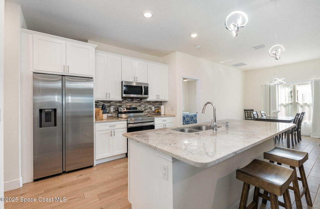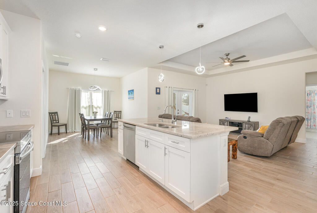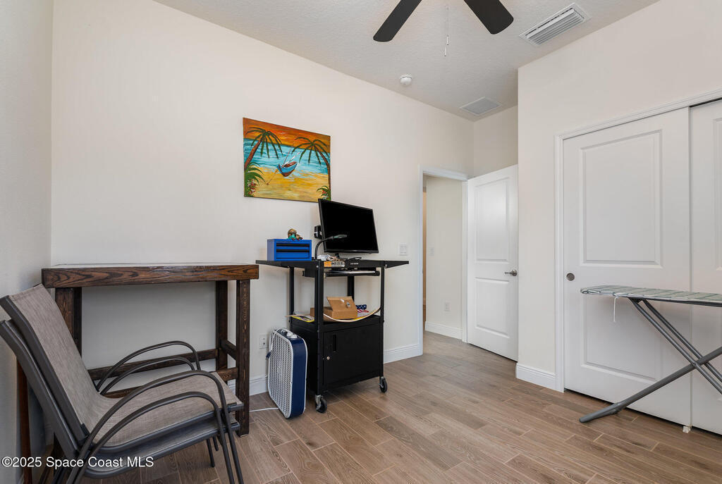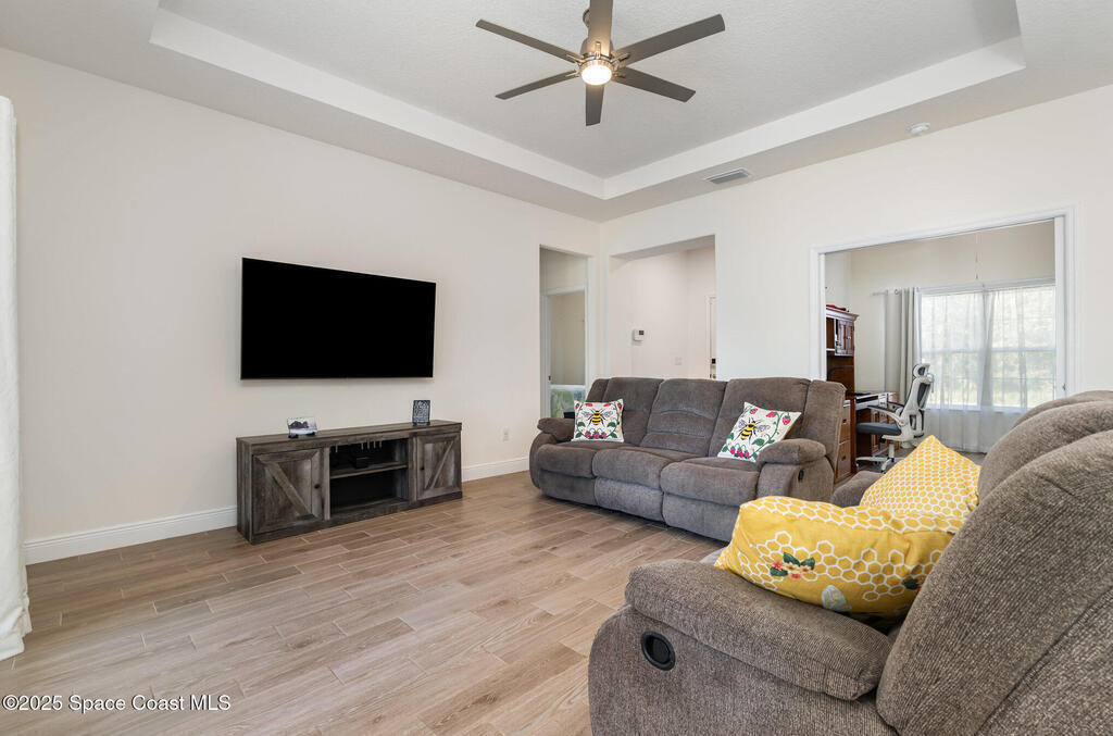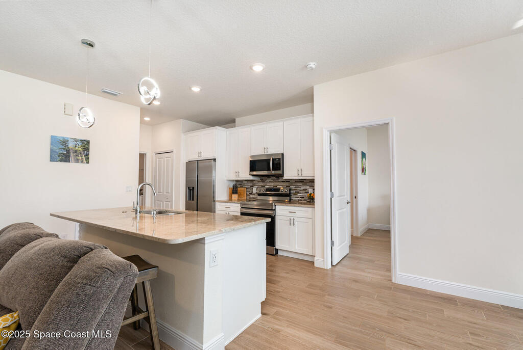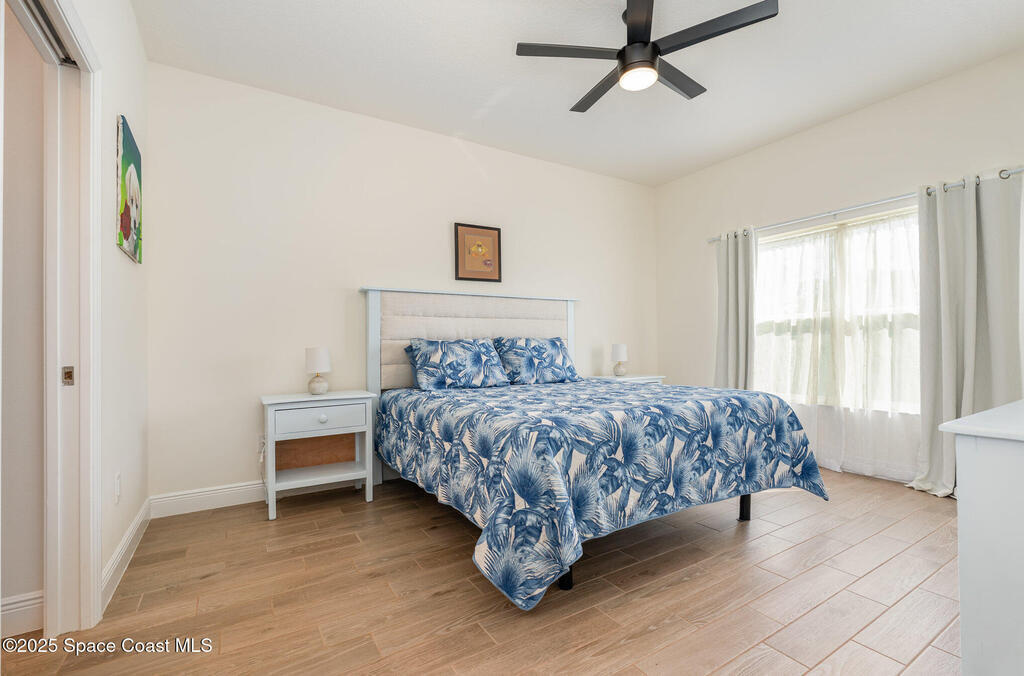 Beautifully maintained 4 bed, 3 bath CBS home in desirable SE Palm Bay featuring paid-off 2022 solar panels with a transferable 25-year warranty, keeping electric bills around $30/month. Fully fenced yard and screened, trussed back porch.Enjoy a true smart home with a Bolt Technologies security system, 6 cameras, window/door sensors, motion sensors, smart thermostat, electronic keypad entry, Ring doorbell, and Wi-Fi-enabled appliances including washer, dryer, and garage door opener. Home also includes 4 TV-mount-ready locations, HDMI in-wall wiring, and COAX ports.The kitchen offers granite countertops, solid wood 42'' cabinets with crown, and smart stainless steel appliances. The primary suite features a tray ceiling, dual closets, a soaker tub, and a tiled walk-in shower. Guest bedrooms include a shared bath with a granite countertop and a tiled tub/shower combo. Move-in ready with modern finishes throughout!