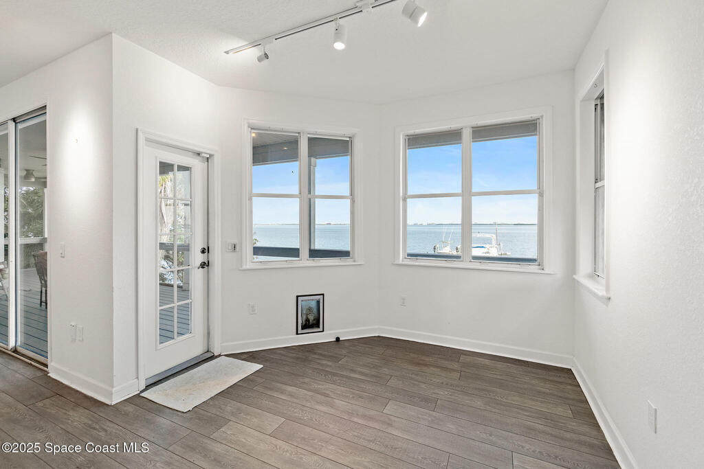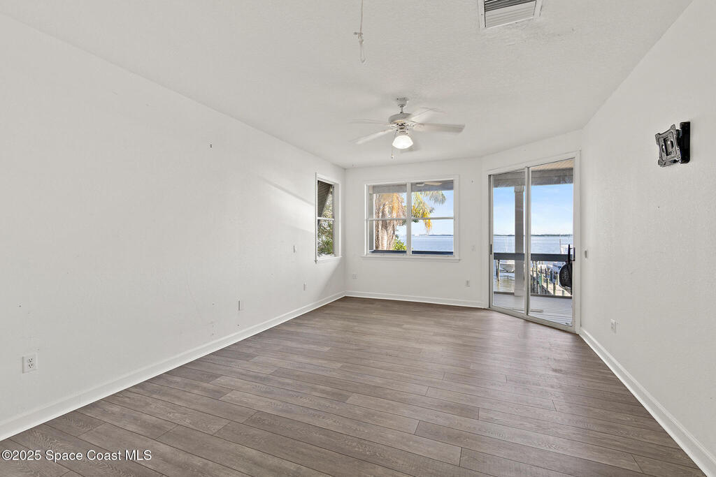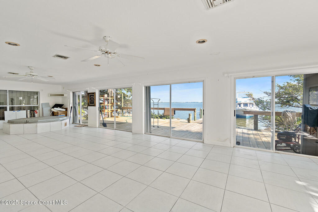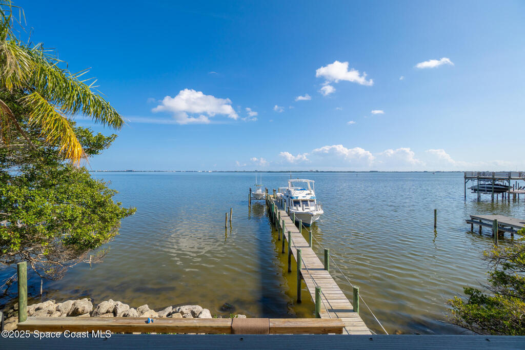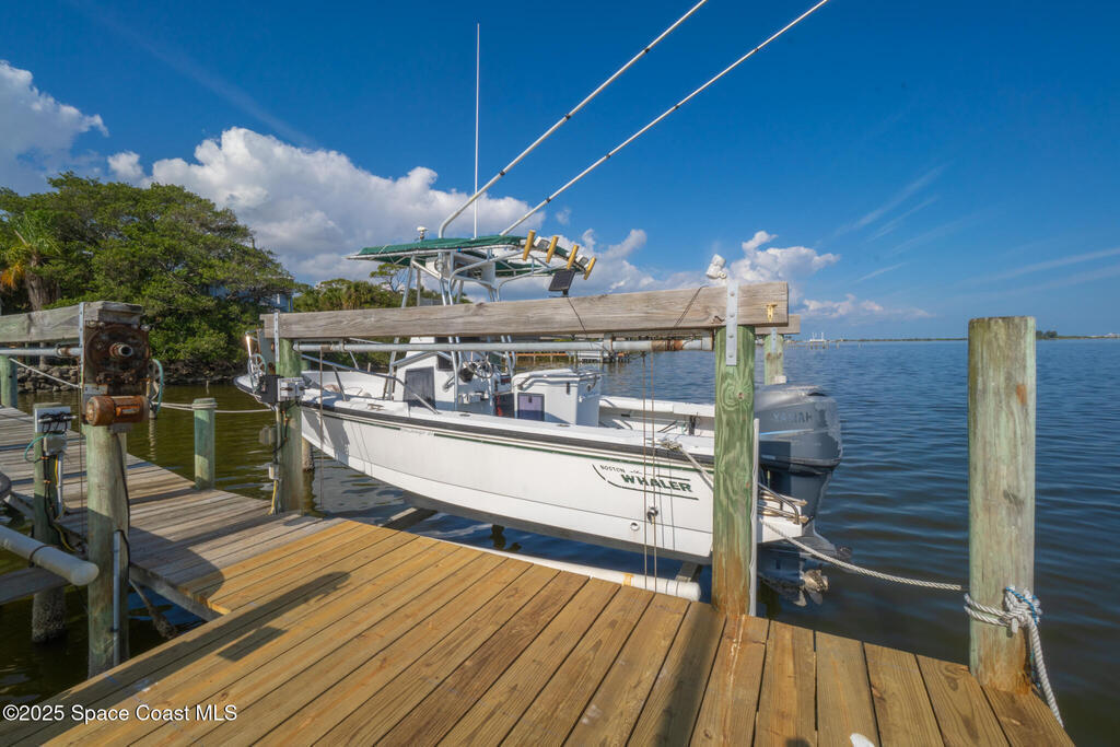 Live the waterfront dream in this stunning 2-story riverfront retreat! Wake up to sunrise dolphin shows from your massive east-facing balcony or primary bedroom.Upstairs delivers an open floorplan w/ updated kitchen featuring granite countertops and a huge bar-top island perfect for casual meals or hosting friends. Natural light pours in while you soak up those river panoramas.Downstairs is your entertainer's playground--wide-open living space flows seamlessly to a wet bar, hot tub, and then straight out to your private boat dock with TWO LIFTS. Launch at dawn, return at sunset, repeat.This is Merritt Island waterfront living at its finest. Whether you're a serious boater, wildlife enthusiast, or just someone who craves that peaceful river lifestyle, this home checks every box. Dolphins, manatees, and spectacular sunrises come standard. Your boat (or two!) will finally have the home they deserve.Ready to drop anchor? This riverfront piece of paradise won't last long!