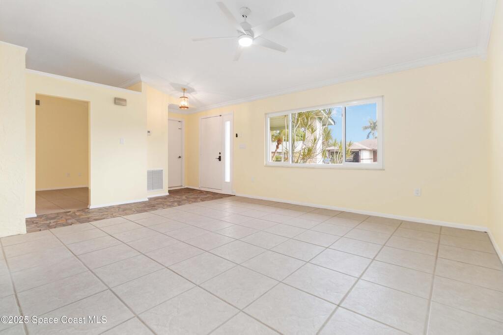 Welcome home! This move-in ready 3 bed/2 bath concrete block home is nestled in a sought after neighborhood, with great bones & fresh updates, ready for your personal touch! Light & bright open floorplan, new interior paint, updated flooring (no carpet). Enjoy peace of mind with major improvements including roof on house replaced in 2023, lanai roof replaced in 2024, water heater replaced in 2024, AC handler replaced in 2023, AC condenser replaced in 2022. Interior features knockdown ceilings (no popcorn) & a comfortable and functional layout. Relax or entertain from your screened lanai & watch the rocket launches from your own yard! 2 car garage. Irrigation system. Great central location near shopping, dining, just minutes to SR-528/Beachline - perfect for commuters, 15 min to beach & Port Canaveral, 15 min to Kennedy Space Center, NASA, Blue Origin & SpaceX, 35 min to Patrick Air Force Base, 40 min to Orlando airport & area attractions!