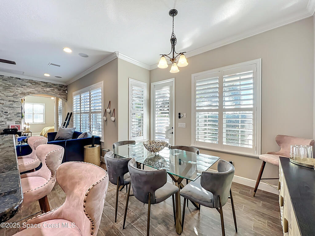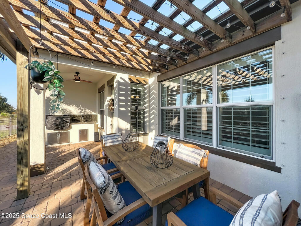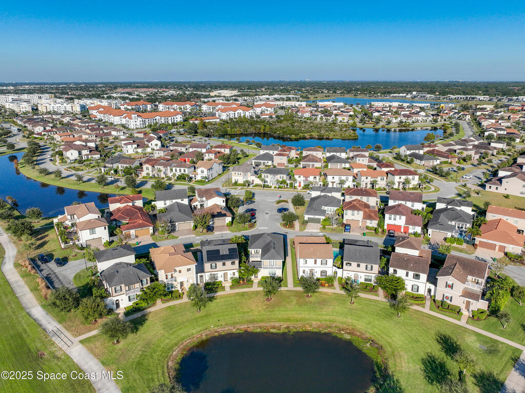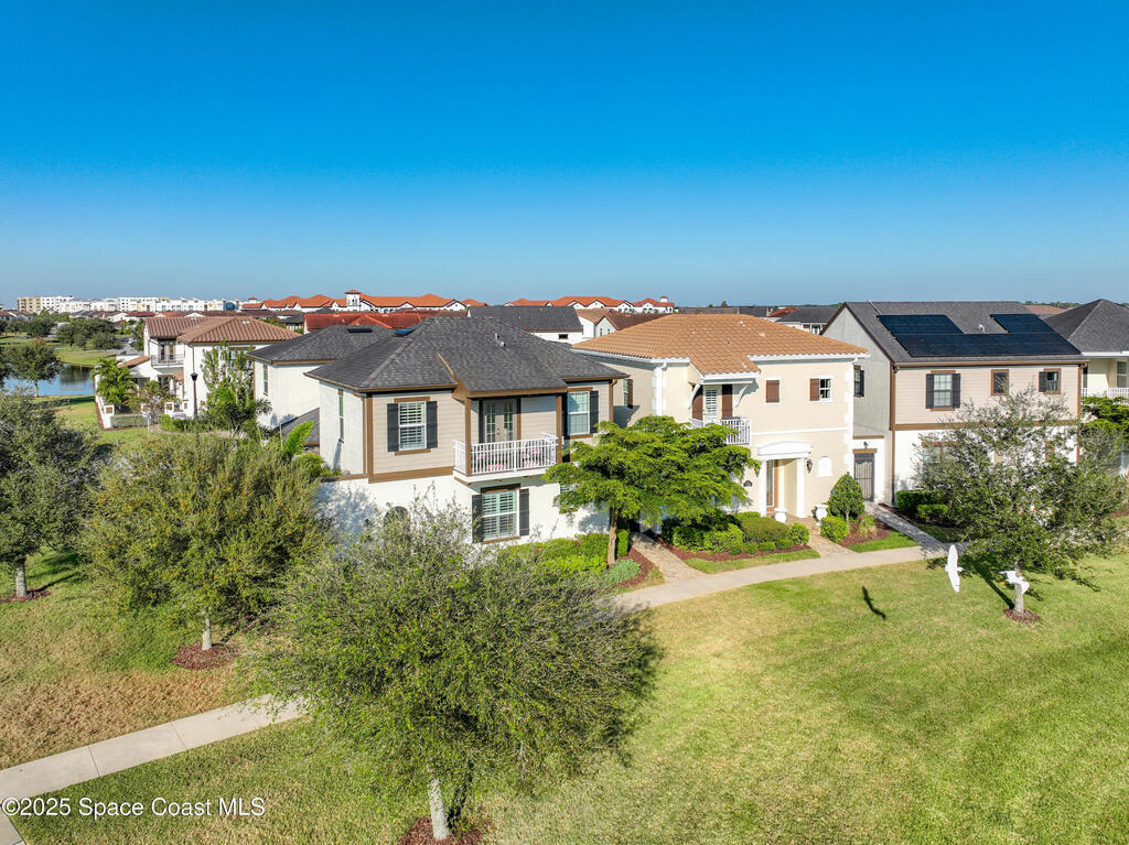 CURB APPEAL & LAKEFRONT LUXURY!This stunning 2,350+ sq ft lakefront villa in Viera is priced to sell quickly & packed with custom upgrades buyers love. From the moment you arrive, the paver driveway, soaring ceilings, and elegant architectural finishes set the tone for an impressive home.Step inside to find wood plank tile flooring, 8' doors, plantation shutters, upgraded baseboards, crown molding, accent tile wall, & recessed lighting creating a warm, upscale feel. The gourmet kitchen shines with a custom island, 42'' cabinetry, tile backsplash, under-cabinet lighting, granite countertops, & stainless steel appliances- perfect for entertaining.The primary suite is conveniently located downstairs with peaceful lake views. Upstairs, enjoy a spacious bonus room & a balcony overlooking both the lake & the Duran golf course. Outdoors, relax or entertain under the pergola, complete with an outdoor kitchen. Truly, a beautifully upgraded, move-in-ready home.