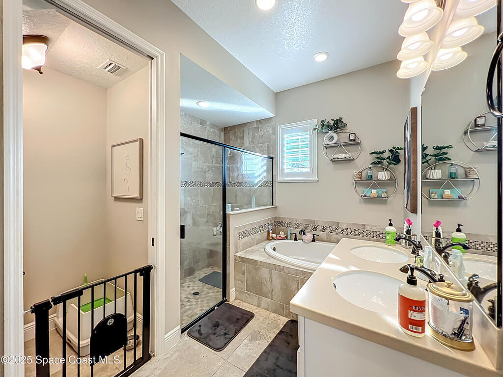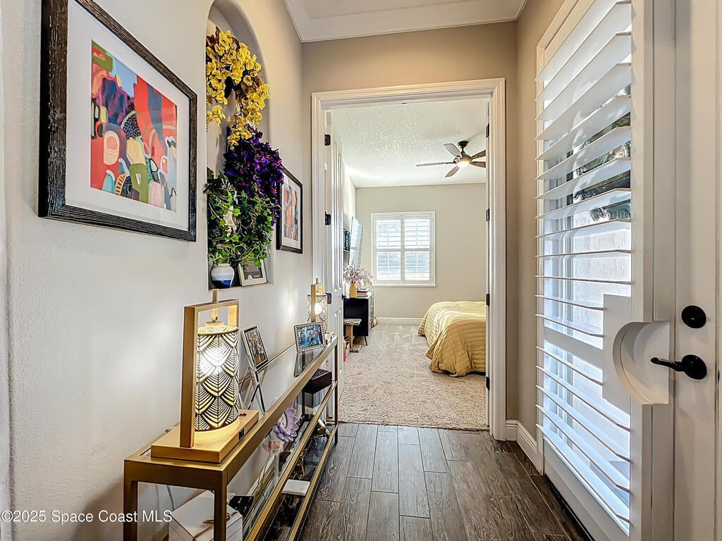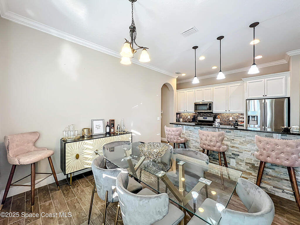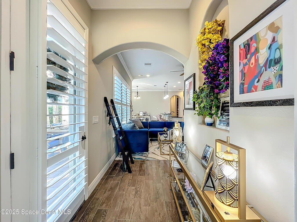 CURB APPEAL & LAKEFRONT LUXURY!This stunning 2,350+ sq ft lakefront villa in Viera is priced to sell quickly & packed with custom upgrades buyers love. From the moment you arrive, the paver driveway, soaring ceilings, and elegant architectural finishes set the tone for an impressive home.Step inside to find wood plank tile flooring, 8' doors, plantation shutters, upgraded baseboards, crown molding, accent tile wall, & recessed lighting creating a warm, upscale feel. The gourmet kitchen shines with a custom island, 42'' cabinetry, tile backsplash, under-cabinet lighting, granite countertops, & stainless steel appliances- perfect for entertaining.The primary suite is conveniently located downstairs with peaceful lake views. Upstairs, enjoy a spacious bonus room & a balcony overlooking both the lake & the Duran golf course. Outdoors, relax or entertain under the pergola, complete with an outdoor kitchen. Truly, a beautifully upgraded, move-in-ready home.