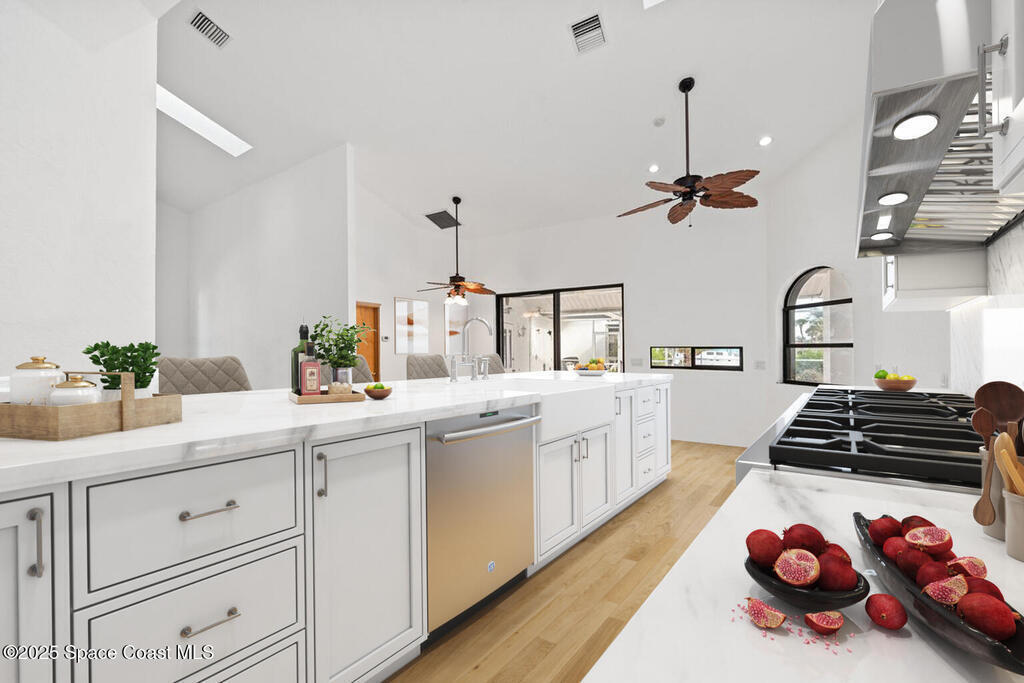 - Interior FeaturesCeiling Fan(s), His and Hers Closets, Primary Bathroom -Tub with Separate Shower, Primary Downstairs, Skylight(s), Split Bedrooms, Vaulted Ceiling(s), Walk-In Closet(s) and Wet Bar