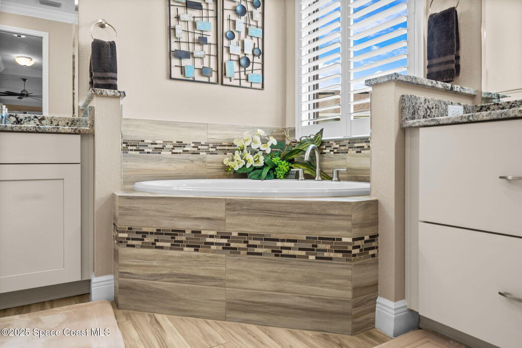- Interior FeaturesBreakfast Bar, Breakfast Nook, Built-in Features, Ceiling Fan(s), Eat-in Kitchen, His and Hers Closets, Pantry, Primary Bathroom - Tub with Shower and Vaulted Ceiling(s)