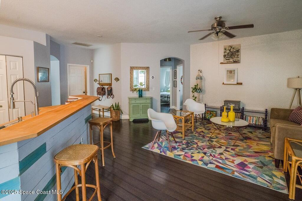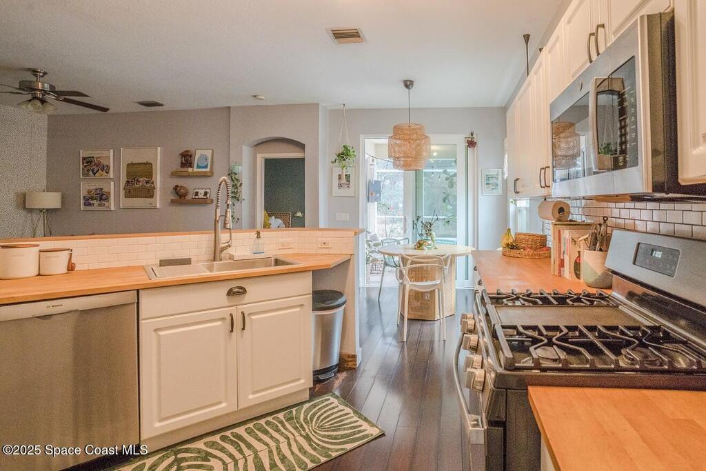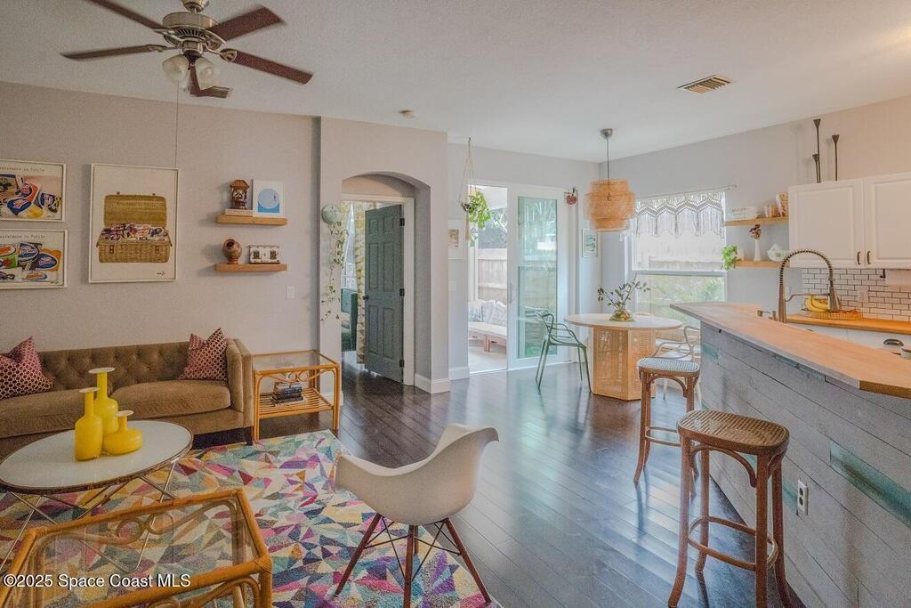 Welcome home to your move-in ready beautifully updated 3 bedroom, 2 bath residence in the highly desirable Live Oak subdivision. Thoughtfully designed for both comfort and style, this home features impact windows throughout, dark bamboo flooring, a stylish kitchen with updated hardware, stainless steel appliances, butcher block countertops, and a chef sink/faucet. Open living areas are filled with natural light and flow seamlessly to the screened-in pool, creating an ideal indoor-outdoor lifestyle for Florida living. Ideally located just 10 minutes from Pineda Beach and 15 minutes to The Avenue in Viera. Perfect as a primary residence or coastal retreat for snow birds, this home offers effortless living in one of the area's most sought-after communities.