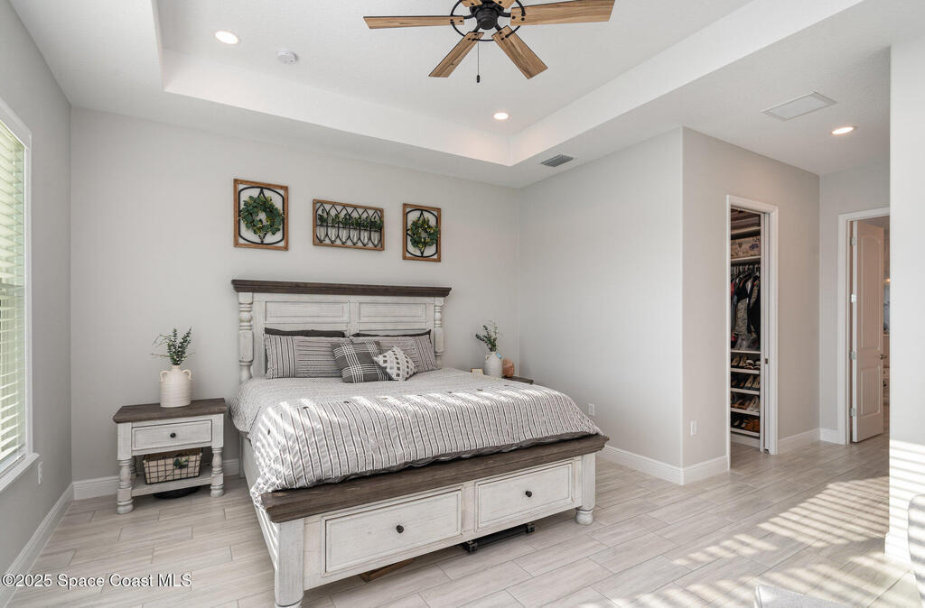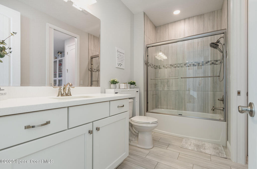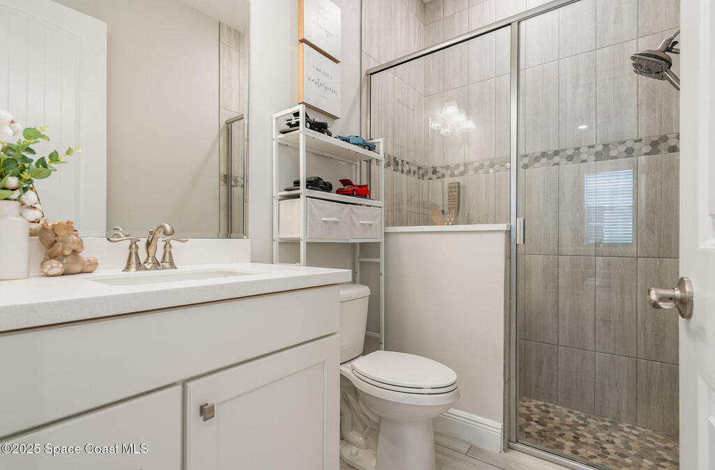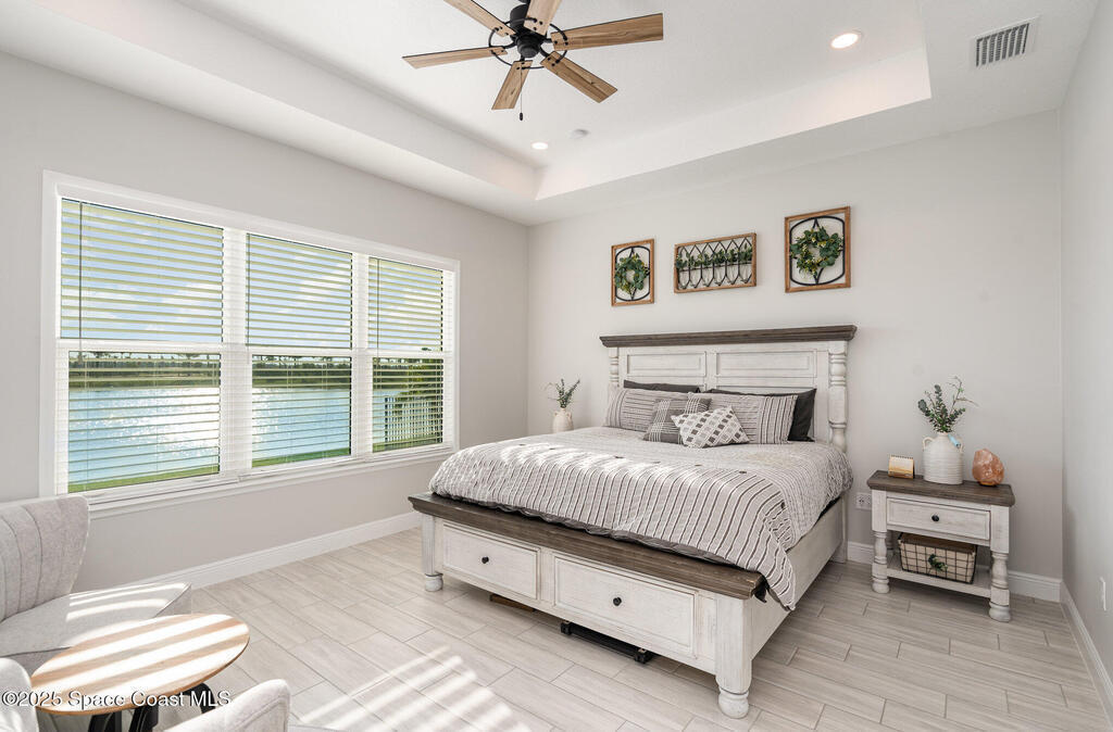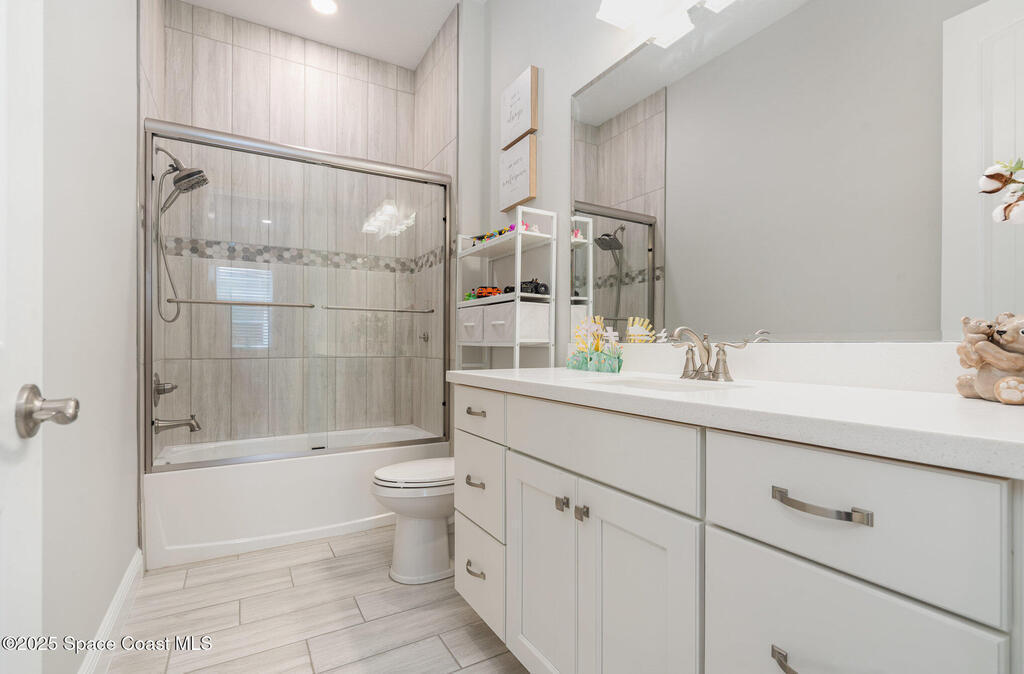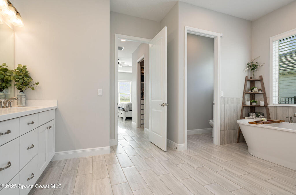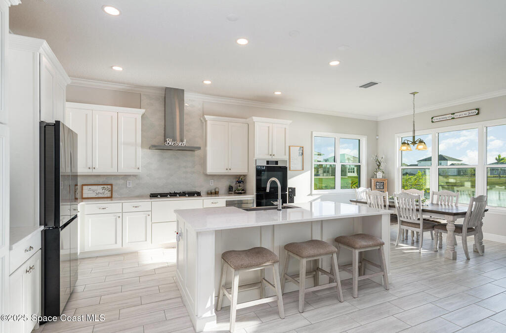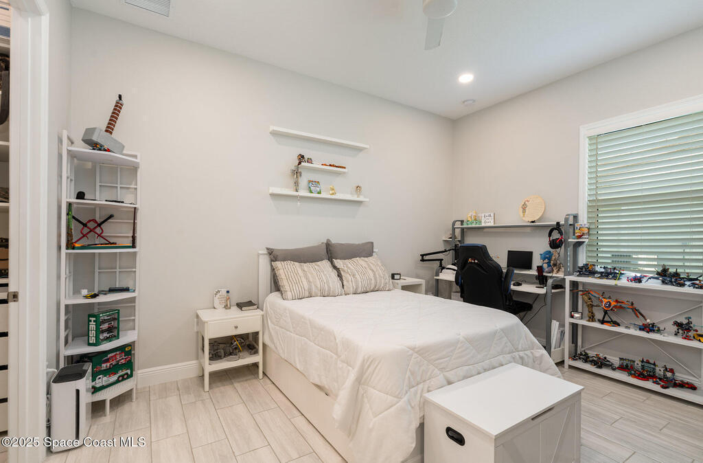Nearly new 2024-built home in Viera's exclusive Laurasia! This spacious 4-bedroom, 4.5-bath residence offers 3,690 sq ft of bright, open-concept living with soaring ceilings and effortless flow for everyday comfort or entertaining. The Gourmet Kitchen package dazzles with Level 4 cabinets, upgraded countertops, and a microwave drawer. Premium Level 3 flooring runs throughout, with matching tile upstairs. Unwind by a 6-ft electric fireplace set on a custom stone wall. Impact windows, a cell-phone booster, and abundant LED high-hat lighting on both floors elevate daily living. The primary suite adds a relaxing soaking tub and premium shower. A private study, laundry cabinets, and extra garage direct-line outlets add function. Outside, enjoy a premium lot with extra lanai outlets plus water and gas stubs, pool-service prep, and space to build your dream backyard oasis. Minutes to schools, parks, The Avenue Viera, beaches, I-95, and Space Coast employers--move-in ready. A MUST SEE!
