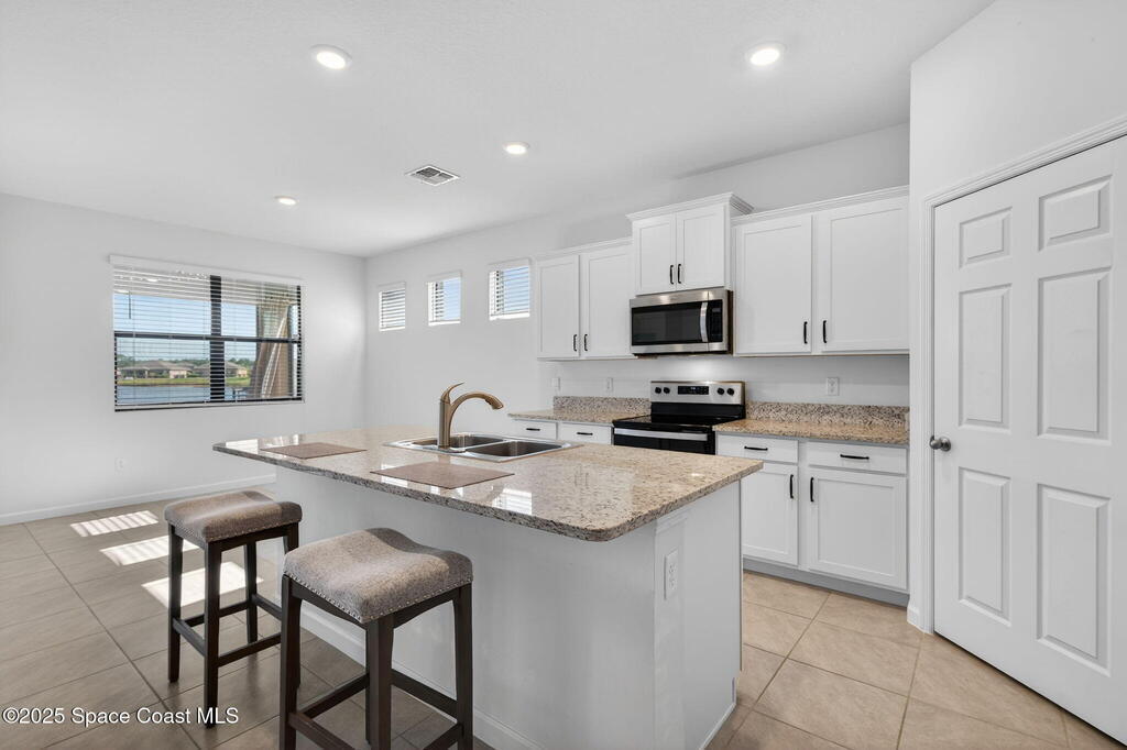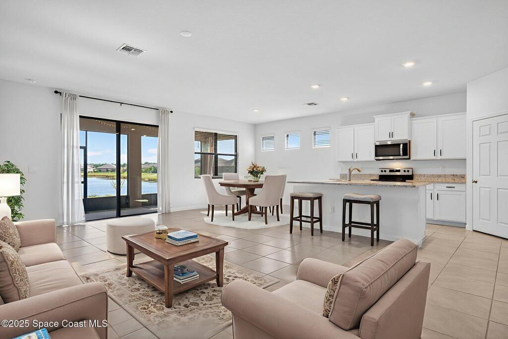 Welcome to the spacious Del-Ray one story model. This is the largest one story floorplan in the community featuring 4 bedrooms, 2 bathrooms, large laundry room and oversize truss covered and screened in back porch. This home has a wonderful lake view from the owners suite living room and while enjoying the approximately 23' x 9' covered porch. The home has 18'' square tile in all of the living and wet areas, modern white cabinetry throughout and Granite in the kitchen. The kitchen also features a large island with bar seating, a walk-in pantry and all matching stainless steel appliances. This is a true split floor plan and the owners suite features two separate walk-in closets, extra wide and tall double vanity, walk-in shower and private water closet. The home is in the newer section of the Stonebriar Preserves and the home owners will have access to the main Bayside Lakes Clubhouse, community center and all amenities including Tennis Courts, Shuffleboard, Basket Ball Court, Swimming